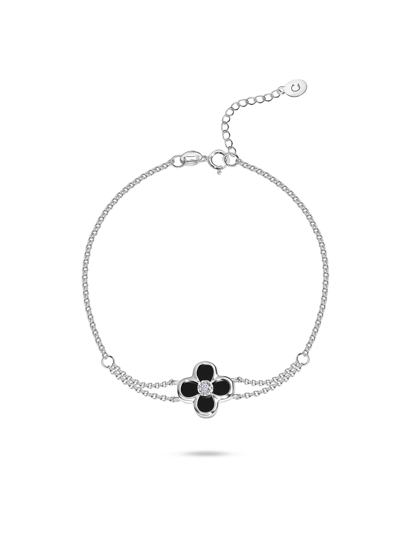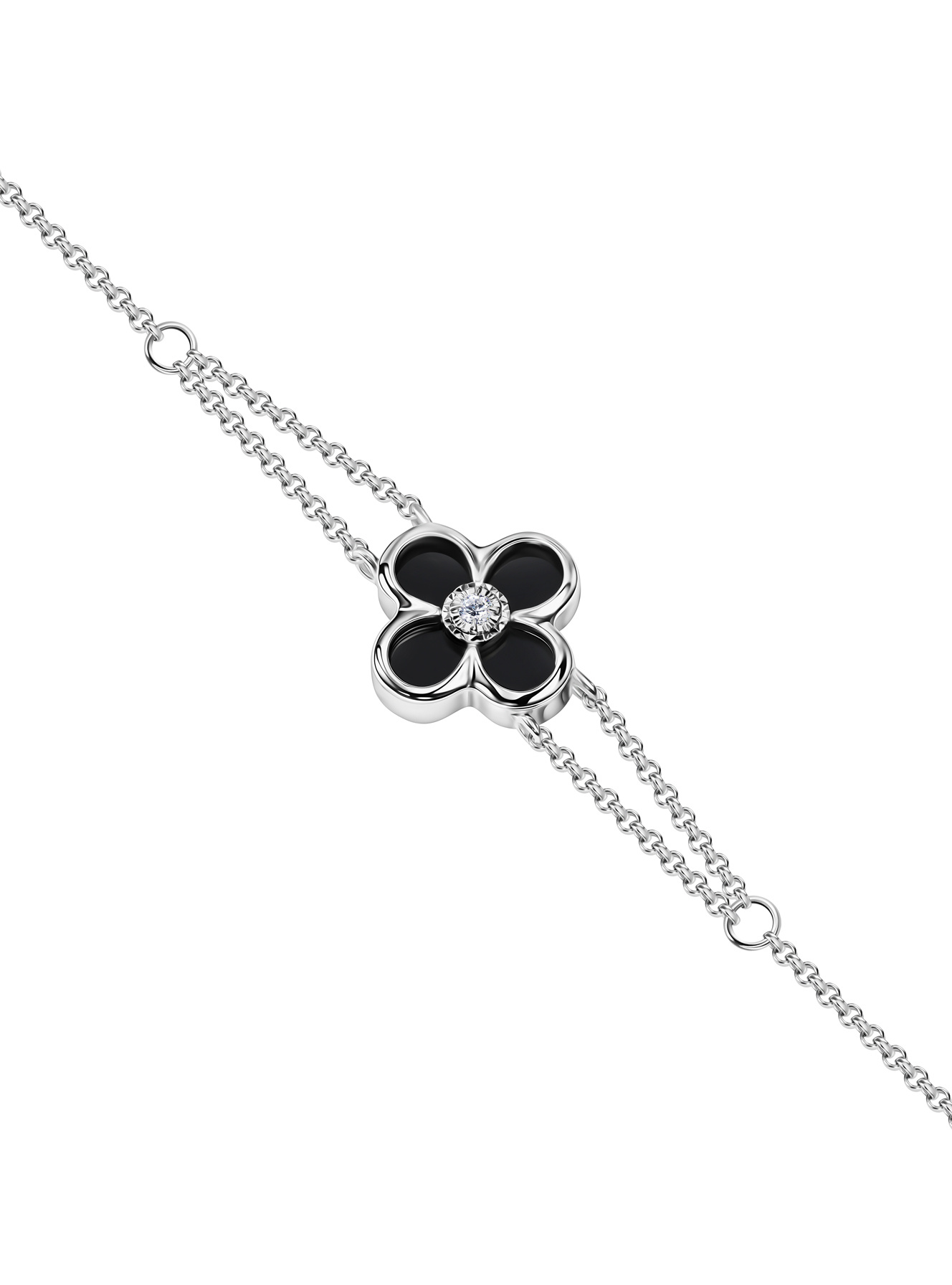 Изящный цветок с черным ониксом и сияющим выращенным бриллиантом в центре создает тот самый контраст, который заставляет всех обращать внимание на твои руки. Что тебе понравится: Стильное сочетание черного оникса и белого металла Выращенный бриллиант добавляет роскошного блеска Регулируемая длина цепочки – подберешь идеальную посадку Цветочный мотив символизирует женственность и силу Подходит как для офисных встреч, так и для романтических ужинов Представь: ты жестикулируешь на важной презентации, и цветок элегантно покачивается на твоем запястье. Или просто потягиваешь кофе с подругами, а они не могут отвести взгляд от этой изысканной детали. Мы создаем украшения с выращенными бриллиантами, следуя нашей миссии – сделать роскошь повседневной и доступной. Пока другие просто носят браслеты, ты рассказываешь свою историю о том, что настоящая красота живет в контрастах!