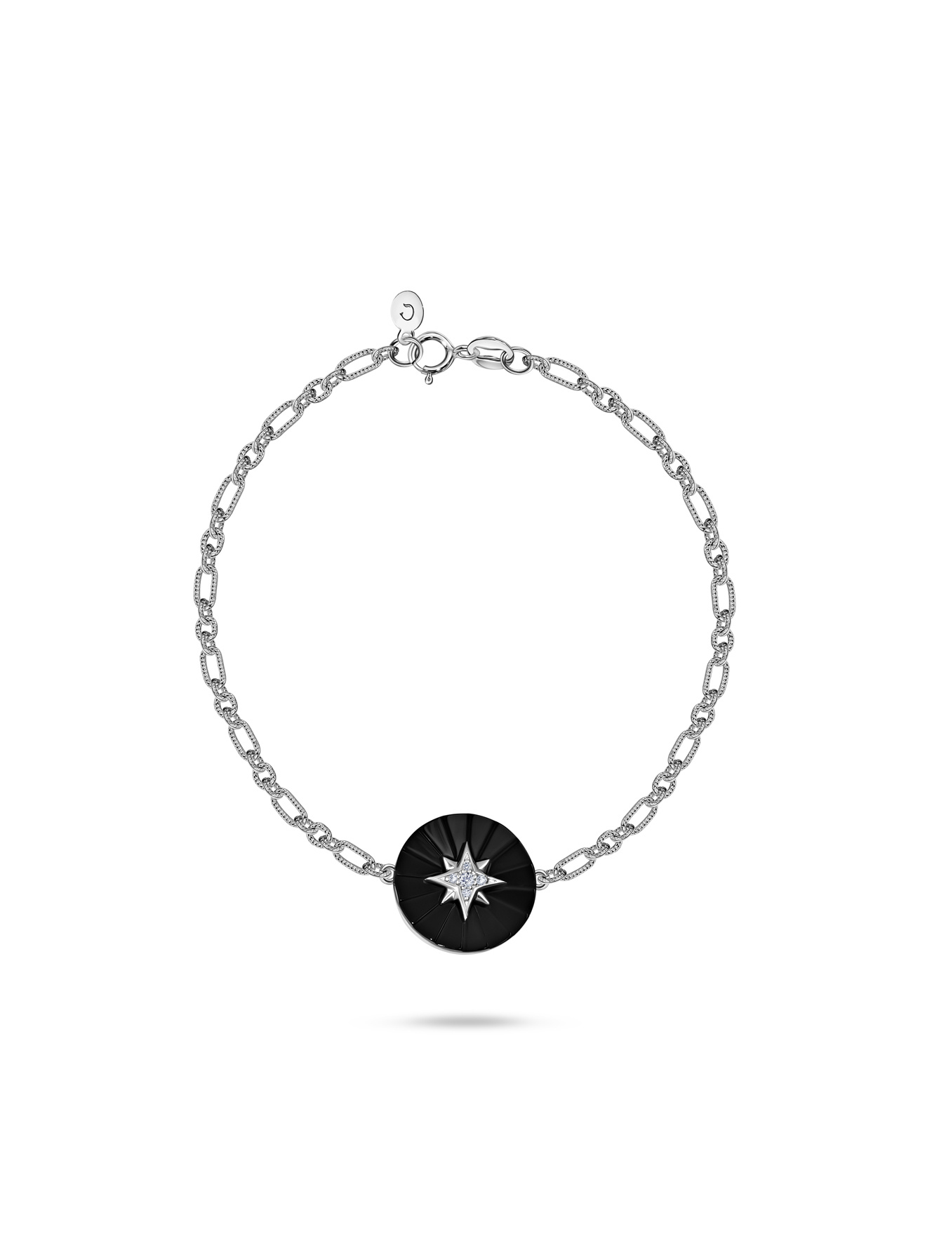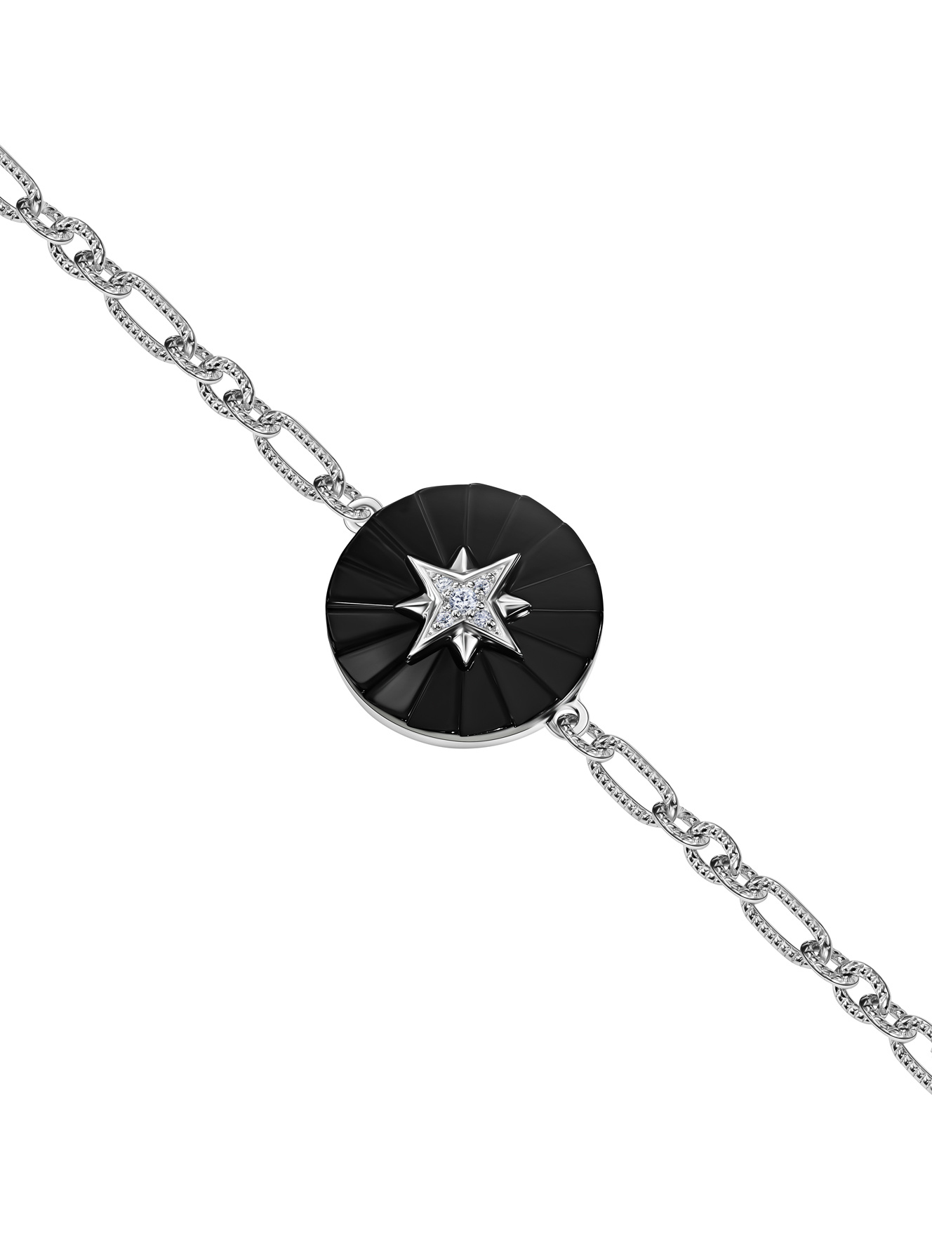 Маленькая вселенная загадок на тонкой цепочке – подарок для той, кто не боится сиять на контрастах ✨ Серебряный браслет с чернёным ониксом и сияющей звездой из выращенных бриллиантов – твой тайный код для входа в мир стиля. Текстурная ониксовая вставка с лучами-лучиками создаёт правильный драматический эффект, а серебряная цепочка якорного плетения добавляет образу ненавязчивую дерзость. Что тебе точно понравится: • Магический чёрный оникс – камень силы и защиты • Сверкающие выращенные бриллианты в форме звезды – этичная роскошь • Идеальная длина с возможностью регулировки под твоё запястье • Универсальность – украшение, которое перекочует из офиса на вечеринку В каждом движении руки – твоя собственная галактика, которая заставит окружающих гадать о твоём секрете. А секрет прост – ты знаешь, что настоящая уверенность начинается с правильных украшений