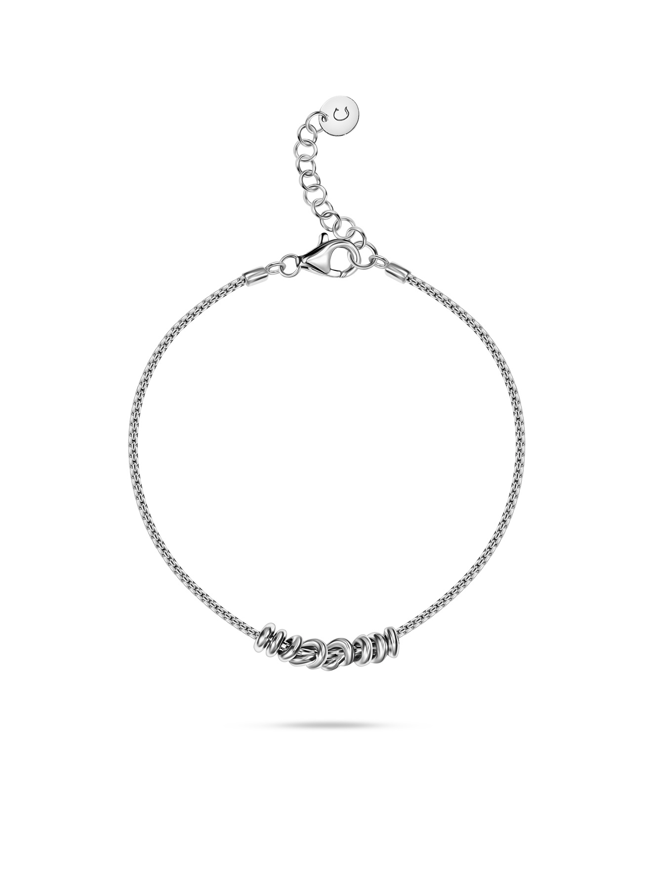Металлическая мелодия твоей индивидуальности! ✨ Этот изысканный браслет с венецианским плетением и оригинальным центральным элементом из полированных серебристых спиралей подчеркнет тонкость твоего вкуса. Тонкая цепочка деликатно обнимает запястье, а регулируемая длина с фирменной застежкой-карабином обеспечит идеальную посадку. Носи его с деловым костюмом, подчеркивая свою элегантность, или с вечерним нарядом, добавляя нотку изысканности. В каждом изгибе этого украшения – частичка твоей уникальности, которая не останется незамеченной!