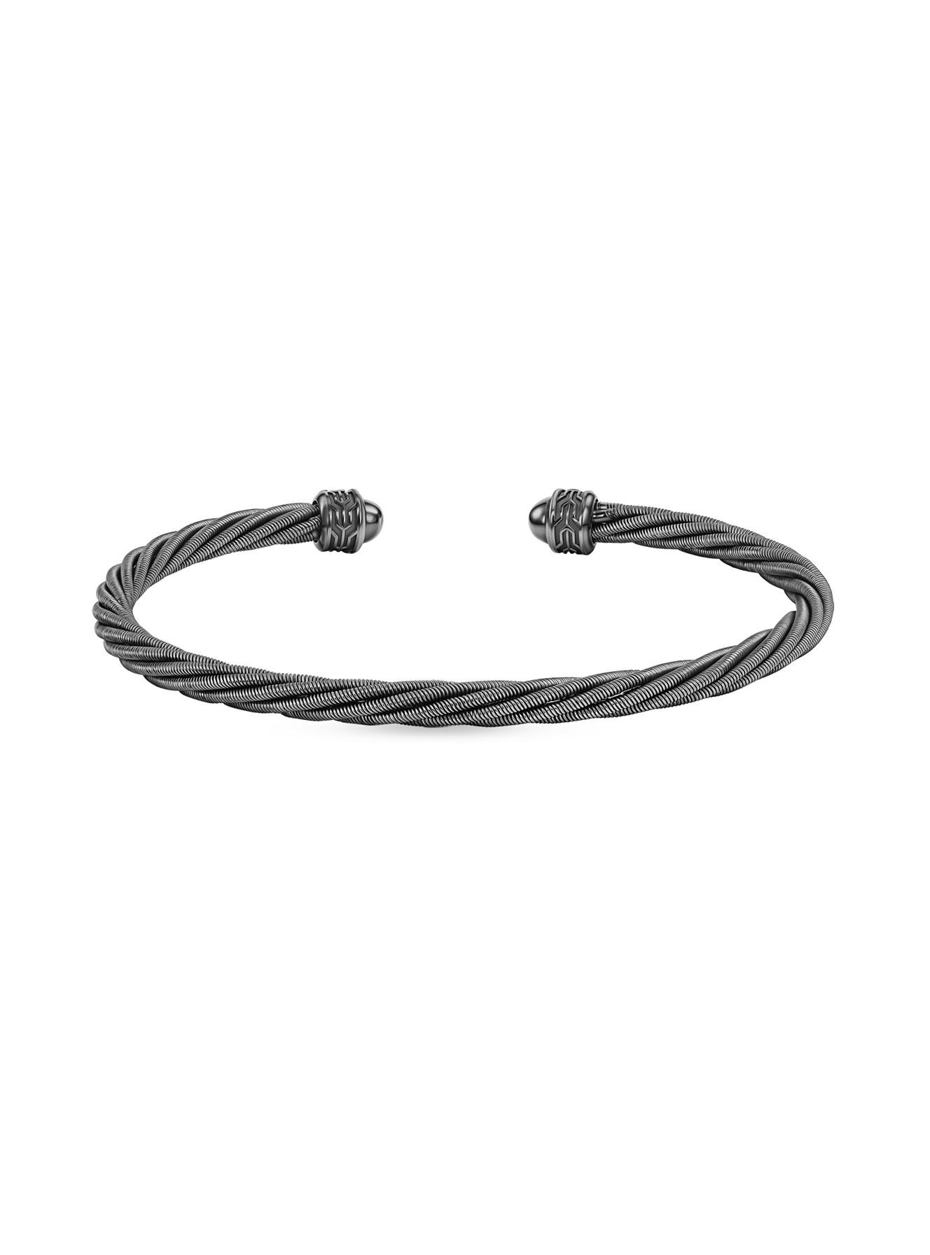 Магистраль из серебряных нитей прямо к твоему сердцу! ✨ Этот изысканный жесткий браслет с многожильным плетением и темным металлическим оттенком – истинное воплощение силы и элегантности. Каждая спираль создаёт завораживающую игру света и тени на твоём запястье, а уникальные наконечники с гравировкой добавляют нотку роскоши. Открытая конструкция делает браслет универсальным для любой руки. Носи его как самостоятельную звезду твоего образа или сочетай с другими металлическими аксессуарами – в каждом движении будет частичка твоей силы и характера!