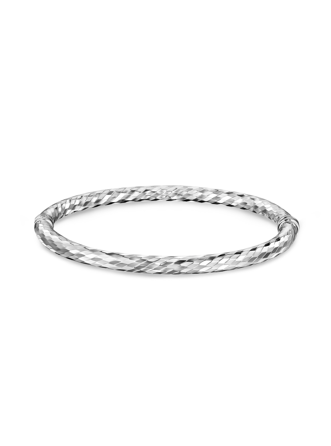 Фактурная поверхность с алмазной гранью создает невероятную игру света, словно тысячи маленьких зеркал на твоем запястье. Что тебе понравится: Жесткая конструкция – надежно и комфортно Фактурная поверхность переливается при каждом движении Универсальный дизайн для любого образа Белое золото подчеркивает твою изысканность Идеально сочетается с другими украшениями Будь то деловые переговоры или дружеская встреча – этот браслет добавит твоему образу ту самую уверенность. Он не кричит о себе, но точно привлекает внимание! Классический дизайн с современной интерпретацией делает его must-have аксессуаром для девушки, которая знает себе цену. Пока другие просто носят украшения, ты создаешь свой неповторимый стиль! Размеры: 65х55