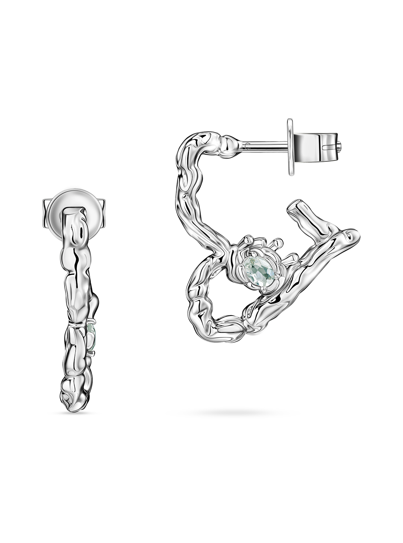 Серьги сердца с празиолитами