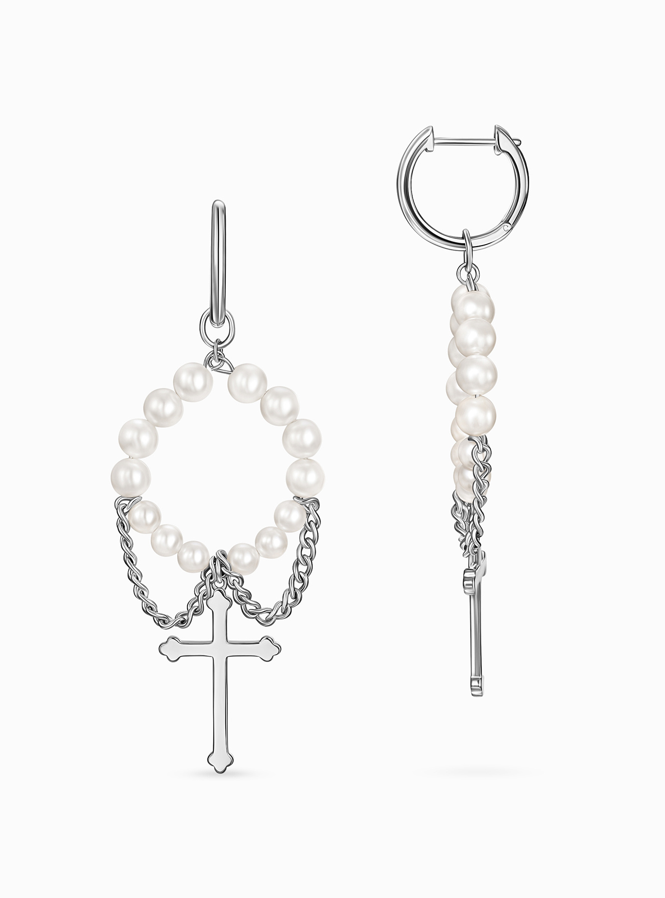 Серьги с жемчугом и крестами