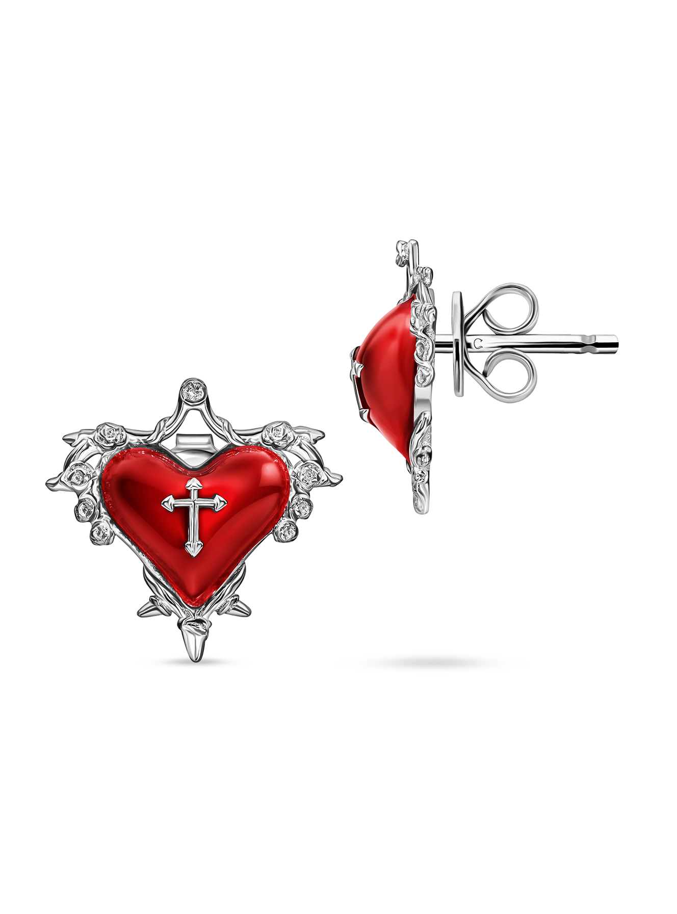 Серьги сердца с эмалью и крестами