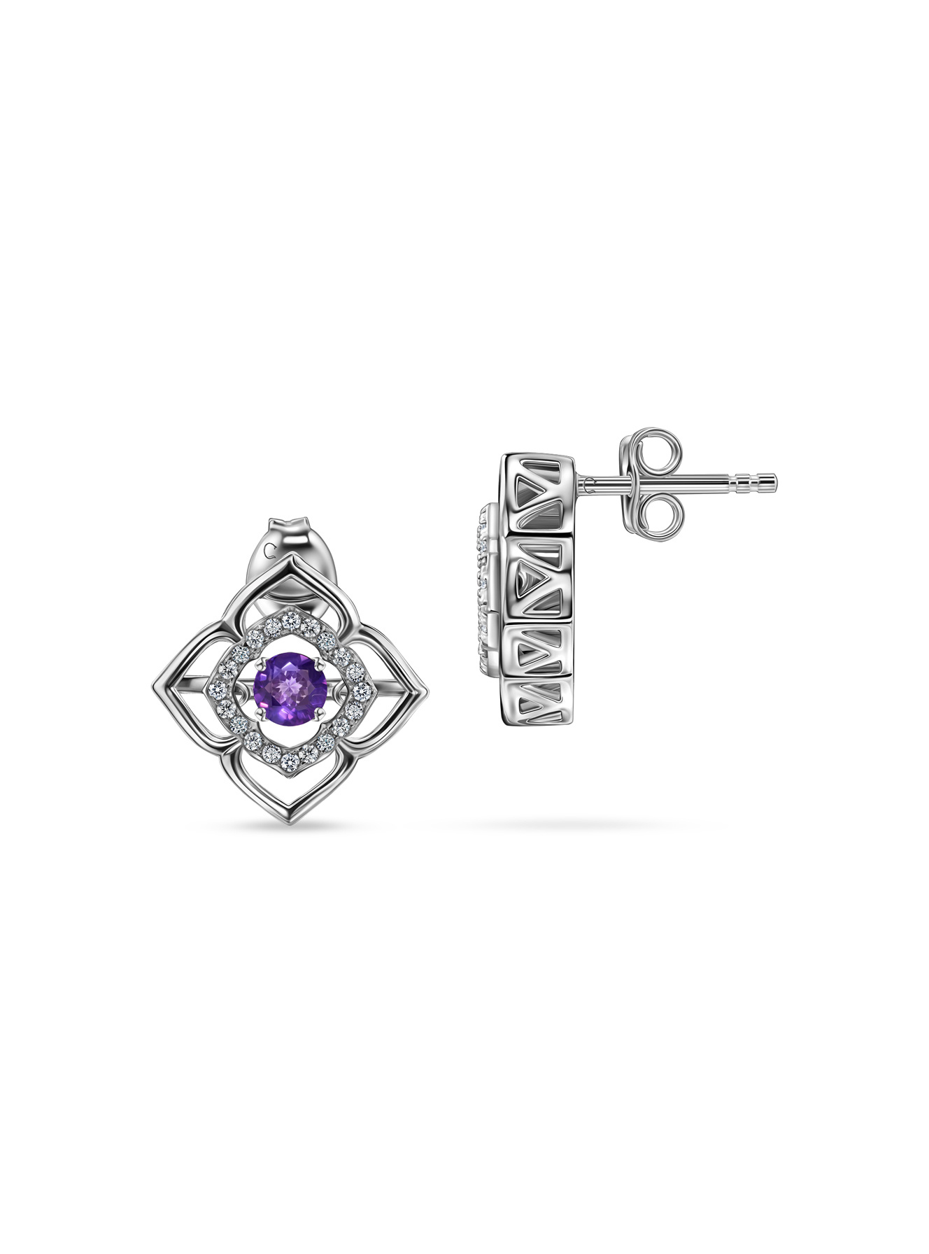 Серьги "Королевская лотос" – твой личный талисман изысканности и силы! Аметист насыщенного пурпурного оттенка парит в центре серебряной рамы, окруженный сияющими бриллиантами. Четырехлепестковая форма создает эффект движения, словно цветок раскрывается с каждым поворотом твоей головы. Надень их с черным водолазкой для деловой встречи или с вечерним платьем для важного события – в любой ситуации эти серьги станут центром внимания и подчеркнут твою королевскую осанку!