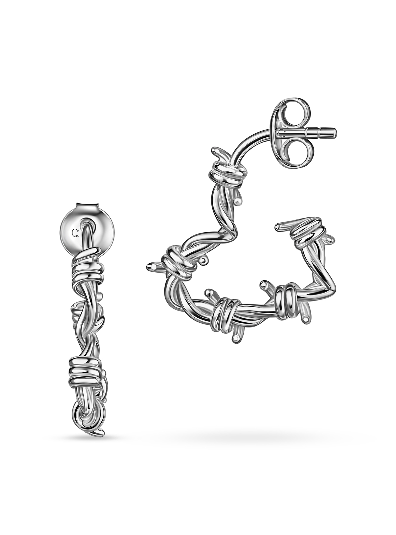 Серьги сердца из колючей проволоки