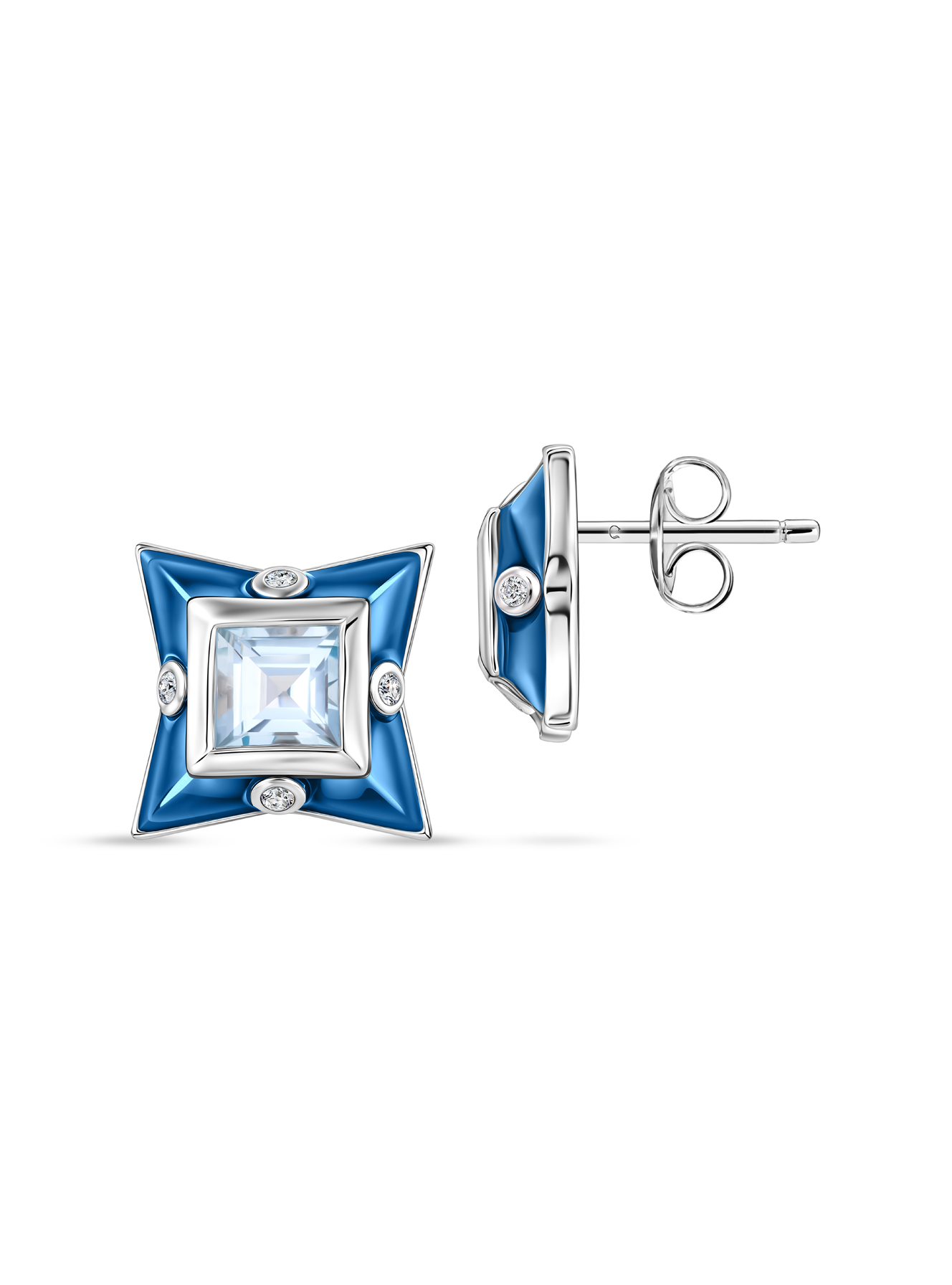 Серьги с топазами, бриллиантом и эмалью