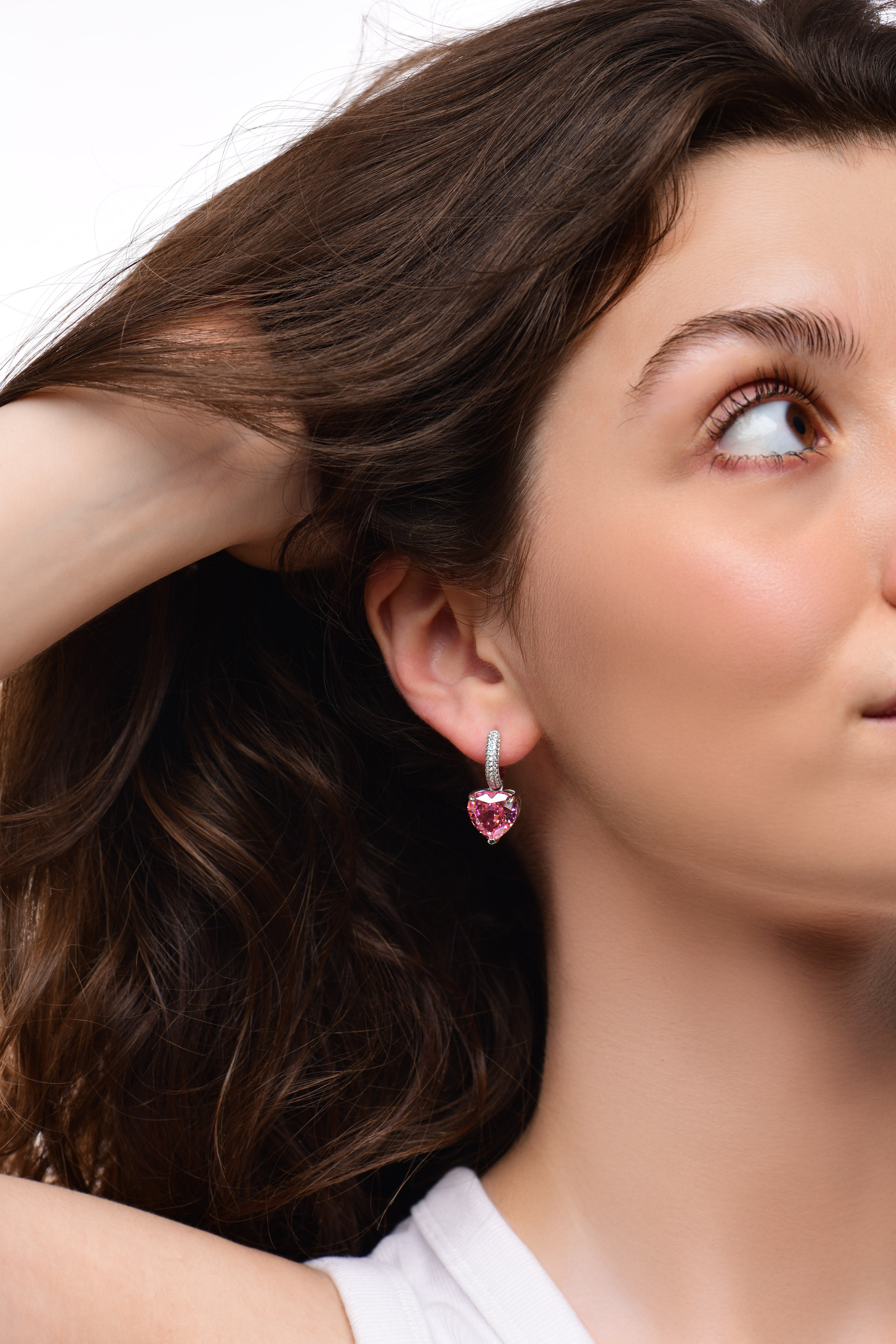 Розовое сердце на бриллиантовой карусели! Эти восхитительные серьги с крупным розовым камнем-сердцем на сверкающей дорожке кристаллов станут главным украшением любого твоего образа. Серебряная оправа и россыпь фианитов по окружности создают королевское обрамление для основного камня. Удобная застежка позволит носить их весь день – от деловых встреч до романтического ужина. Твой базовый гардероб заиграет новыми красками, а все вокруг будут спрашивать – где ты взяла такую красоту!