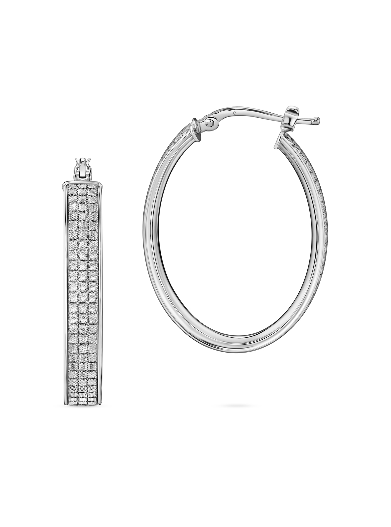 Серьги-полукольца "Серебряная сетка" – твой пропуск в мир утонченной роскоши! Мерцающая текстурированная поверхность с шиммером создает эффект тысячи крошечных бриллиантов, ловящих свет под любым углом. Эргономичная овальная форма идеально обрамляет лицо, а гладкая внутренняя сторона гарантирует комфорт даже при длительной носке. Эти серьги – настоящие хамелеоны твоего гардероба: днем они выглядят сдержанно-элегантно для офиса, а вечером превращаются в роскошное дополнение к коктейльному платью! Надежный замок с фирменной меткой "С" обеспечит спокойствие во время самых энергичных танцев. Размеры: 35х35