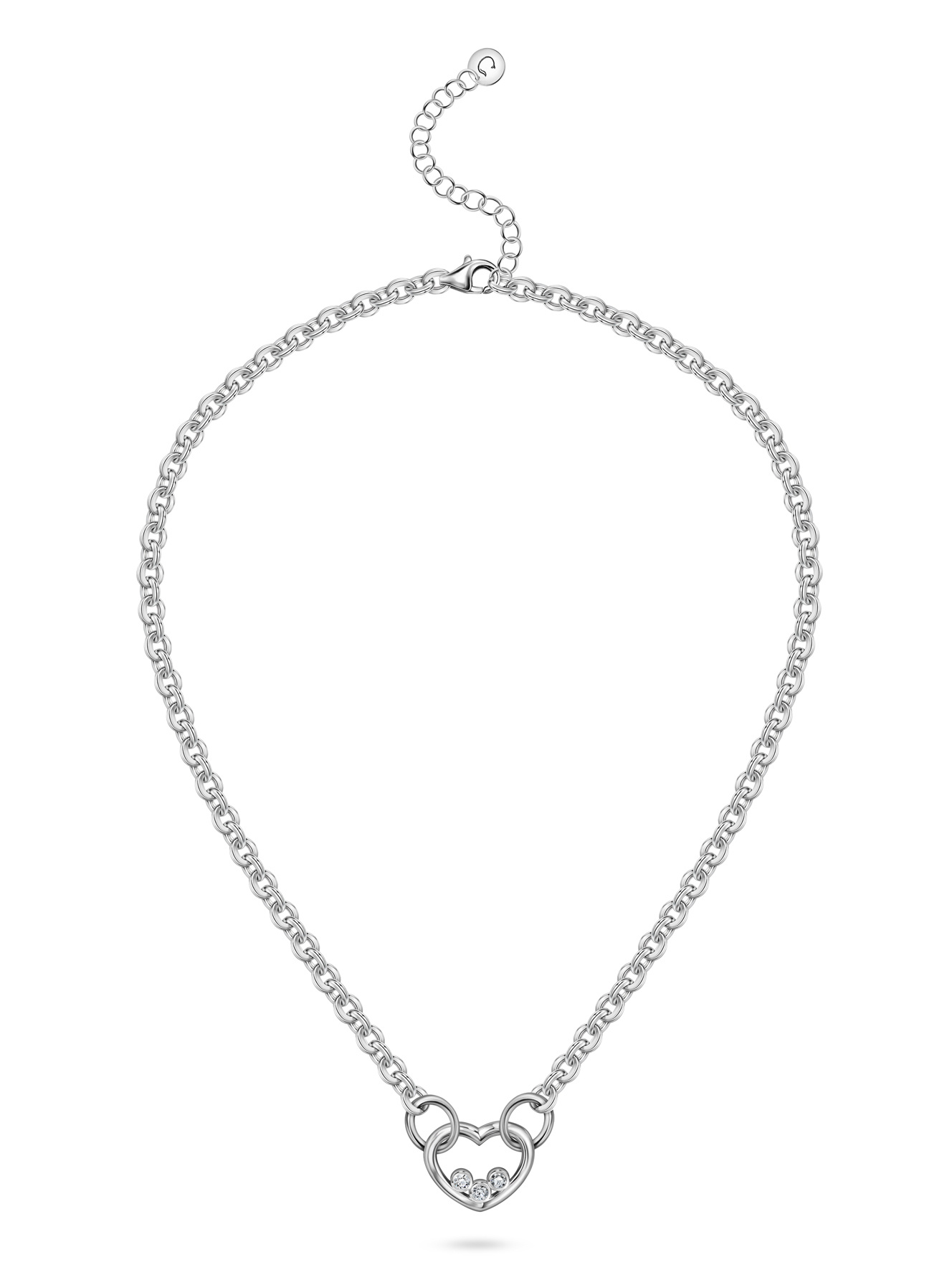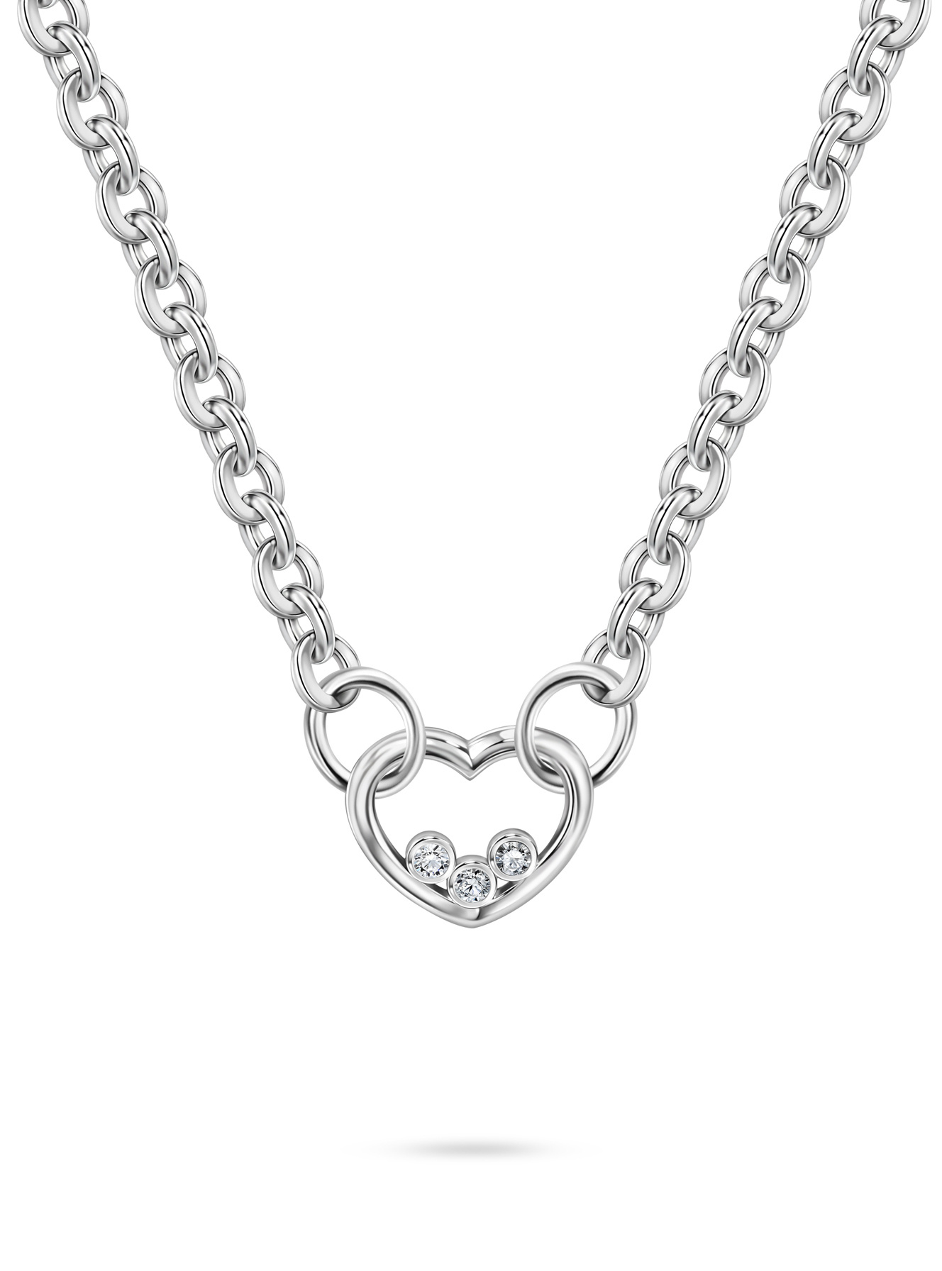 Массивная серебряная цепь с сердечком и бриллиантами – твой личный микс нежности и дерзости! Контраст крупных звеньев и деликатного подвеса создаст идеальный акцент как для вечернего платья, так и для базовой футболки. Внутри сердца игриво перекатываются три сверкающих бриллианта, напоминая о твоей многогранности. Носи его на разной высоте – как чокер для открытого декольте или удлиненную версию для офисного образа. В каждом мерцании камней – твоя неповторимая энергия, которая не остается незамеченной!