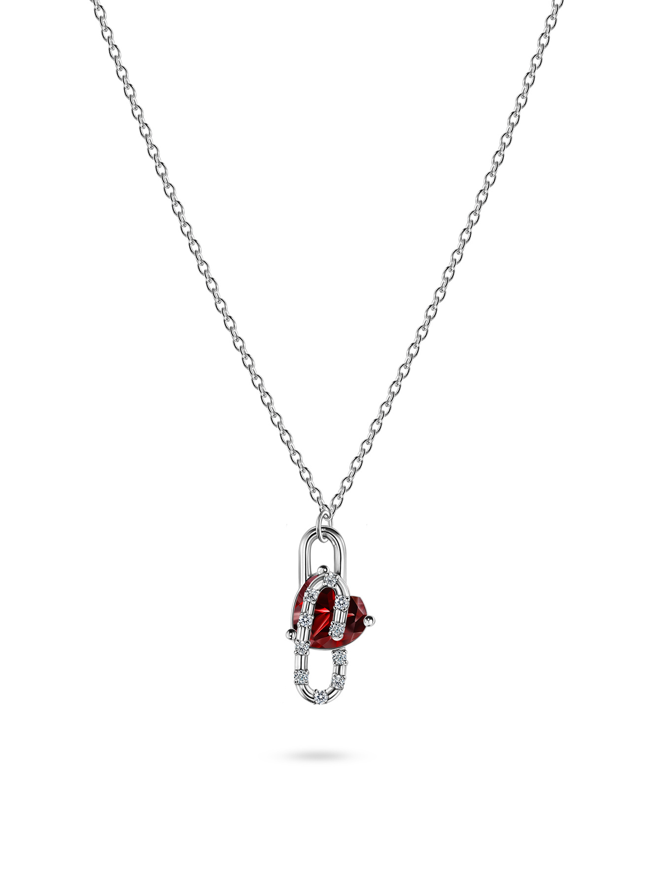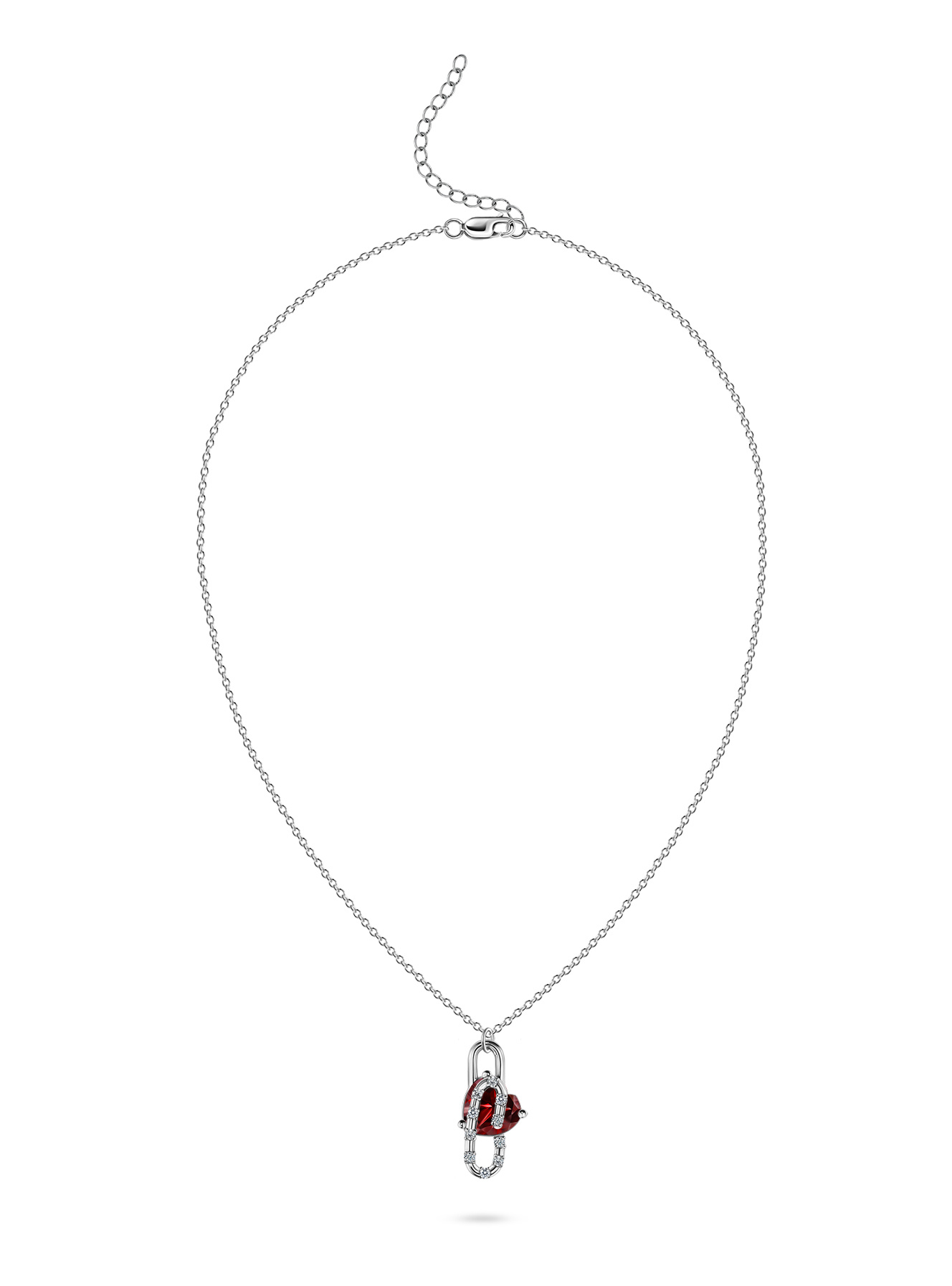 Колье скрепка с гранатом в форме сердца и бриллиантами
