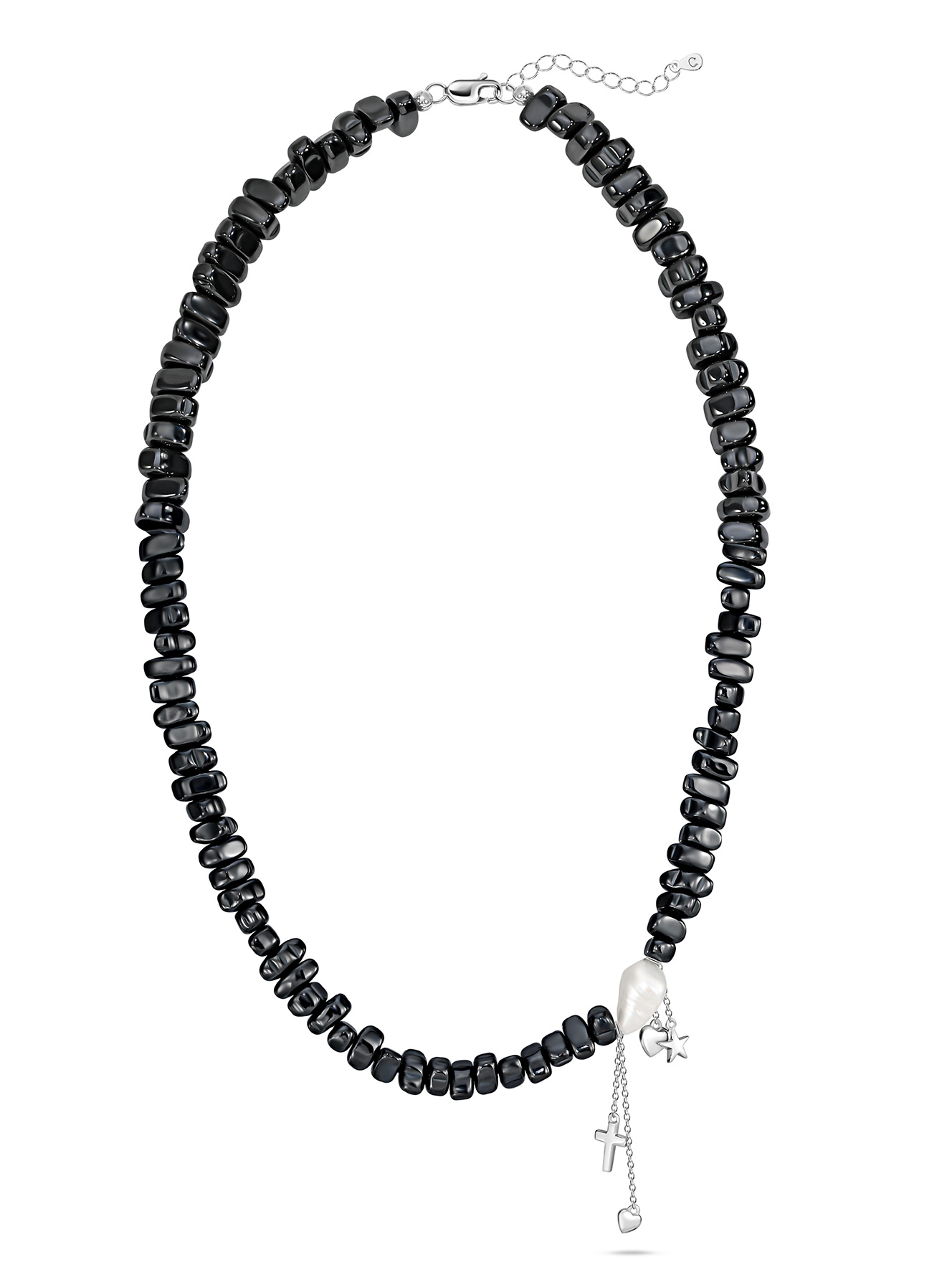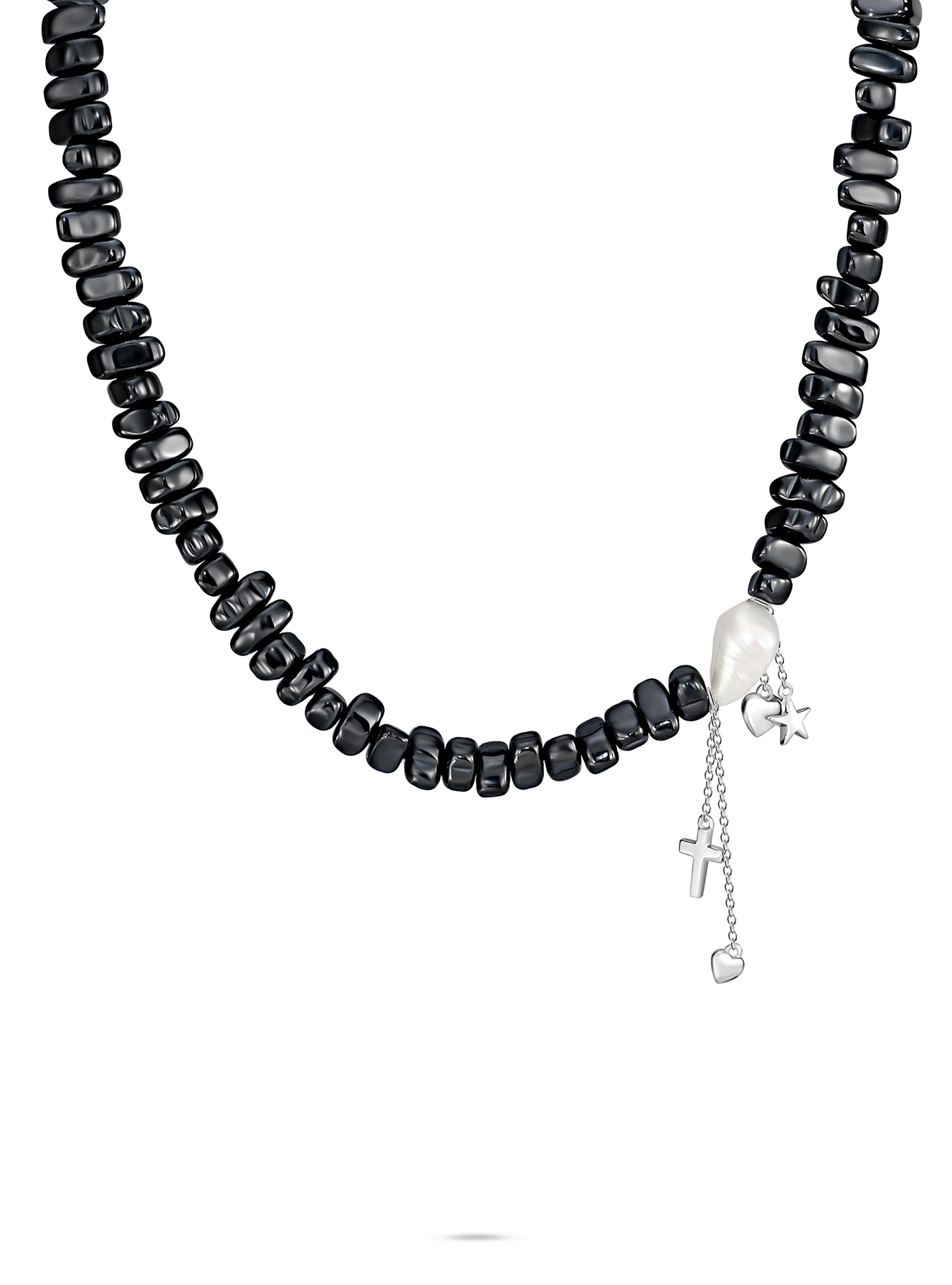 Колье с гематитом и жемчугом