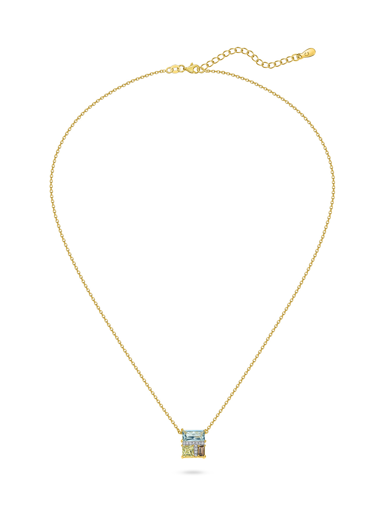 Твой парфюм для шеи – колье с геометрической композицией из драгоценных камней! Настоящая галерея оттенков: голубой празиолит, лимонный кварц и нежный раухтопаз, соединенные дорожкой бриллиантов. Представь, как этот квадратный шедевр становится центром внимания на презентации или первом свидании. В каждом повороте головы – игра света, которая подчеркивает уникальность твоего стиля! Носи с однотонными топами или воротником-стойкой – везде будешь выглядеть как с обложки модного журнала!