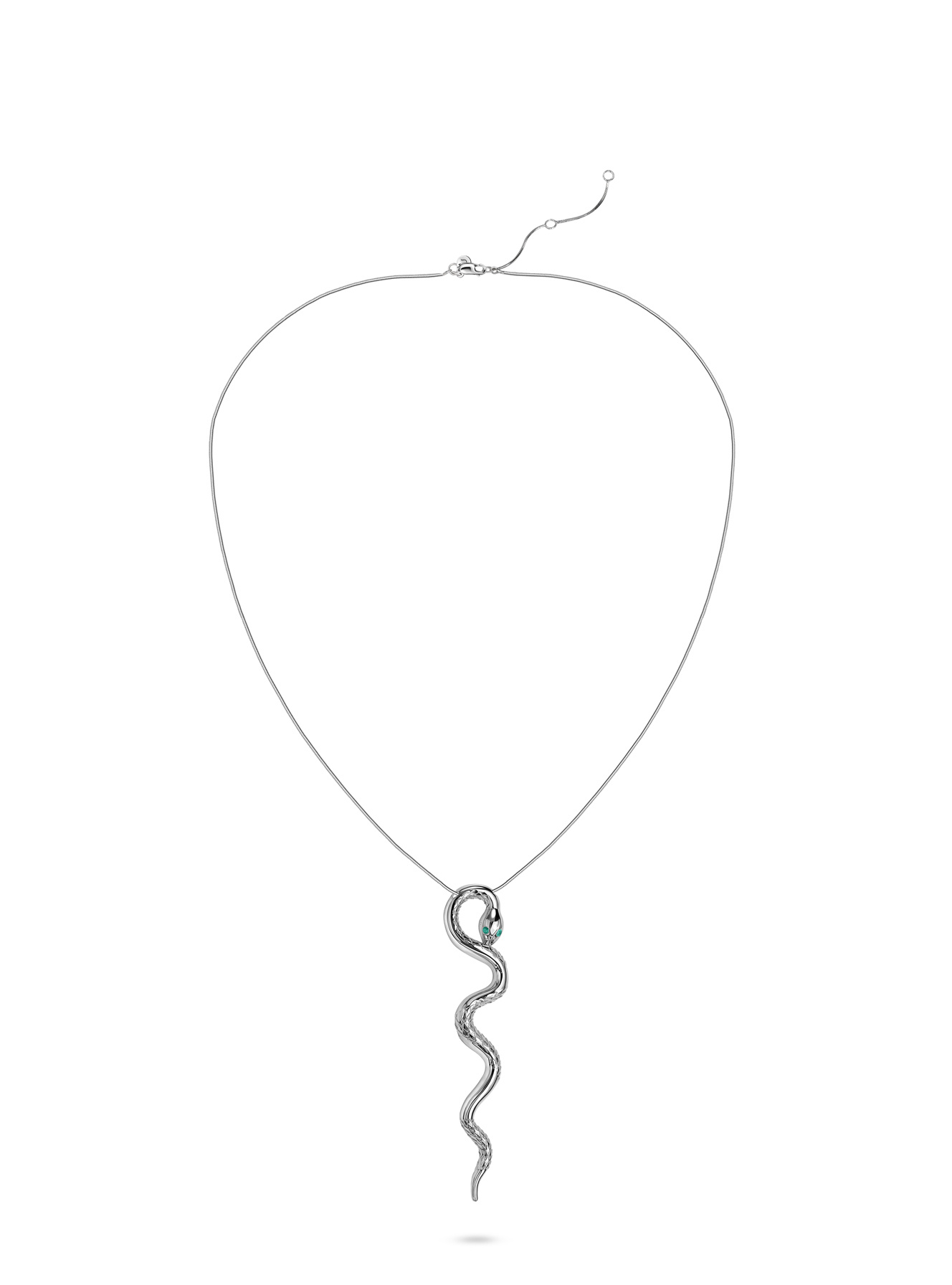 Грациозное колье-змея из серебра с изумрудами – твой билет в мир таинственной роскоши! ✨ Извивающаяся серебряная линия с тщательно проработанной фактурой чешуи и пронзительным изумрудным взглядом превратит даже самое скучное платье в наряд богини. Тонкая змейная цепочка лишь подчеркивает изысканность самого кулона. Надень его на открытое декольте, и все взгляды будут прикованы к тебе! В каждом движении этой серебряной рептилии – твоя женская сила и магнетизм. Это не просто украшение – это твой личный талисман, который напоминает: настоящая власть принадлежит тем, кто умеет очаровывать одним взглядом.
