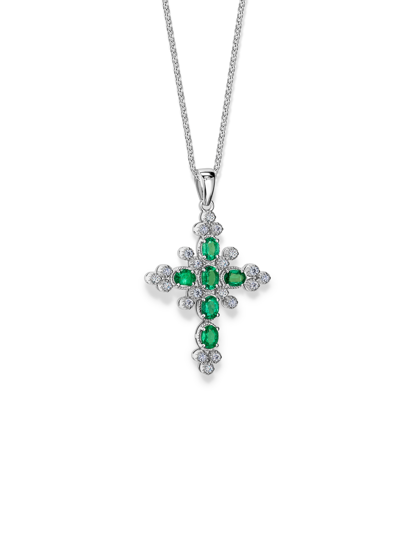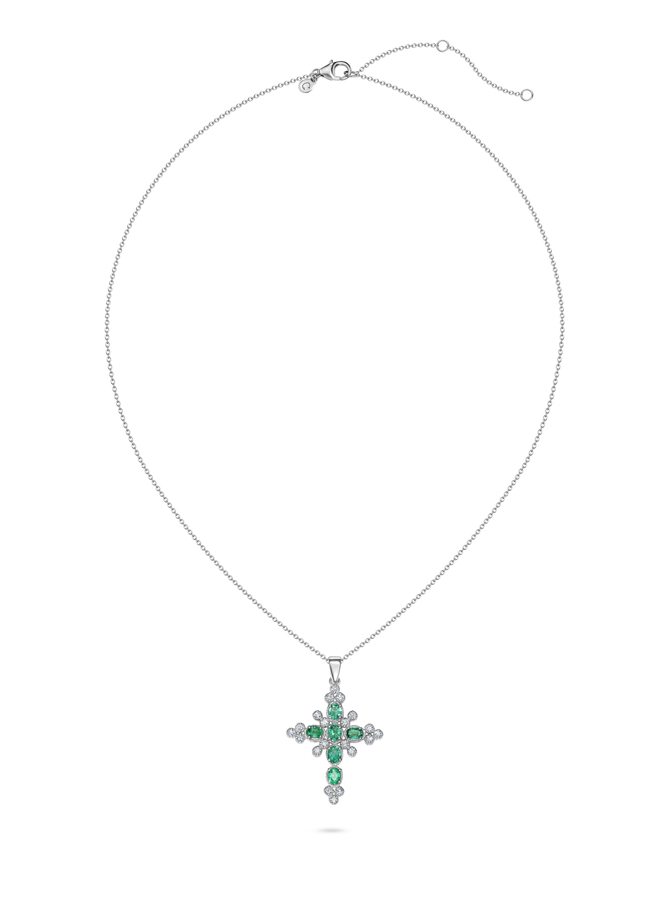 Колье - крест с природными замбийскими изумрудами и бриллиантами
