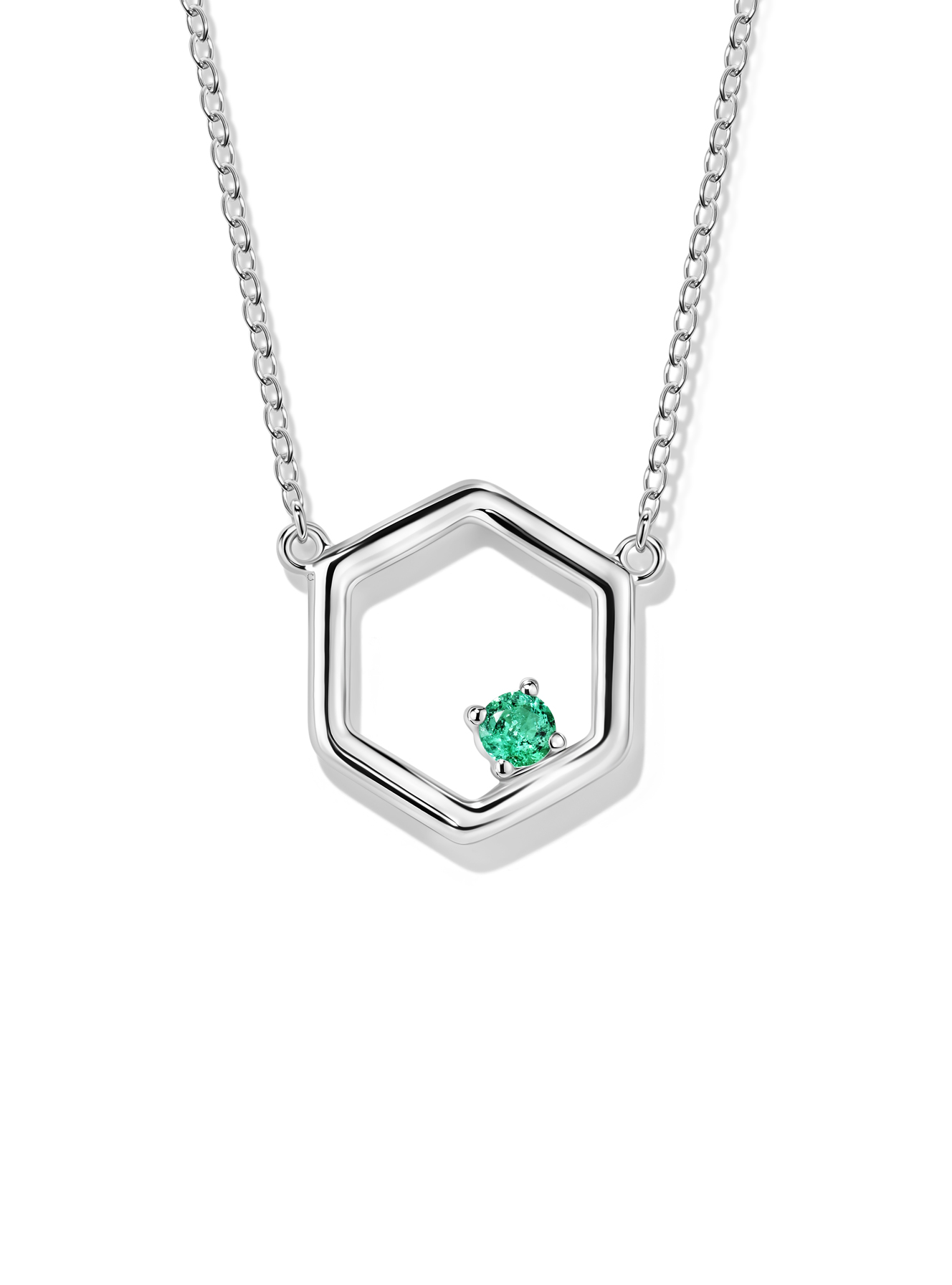 Изумрудная точка в геометрической вселенной – твой персональный знак отличия! Серебряное колье с замбийским изумрудом в шестиугольной оправе сочетает минимализм и глубокий смысл. Носи его с белым воротником-стойкой на деловые переговоры или с открытым декольте на свидание – неизменно будешь в центре внимания. Природный замбийский изумруд в центре композиции придаёт украшению особую ценность и редкость. В каждом движении этого колье – история твоей силы и баланса, рассказанная без единого слова!