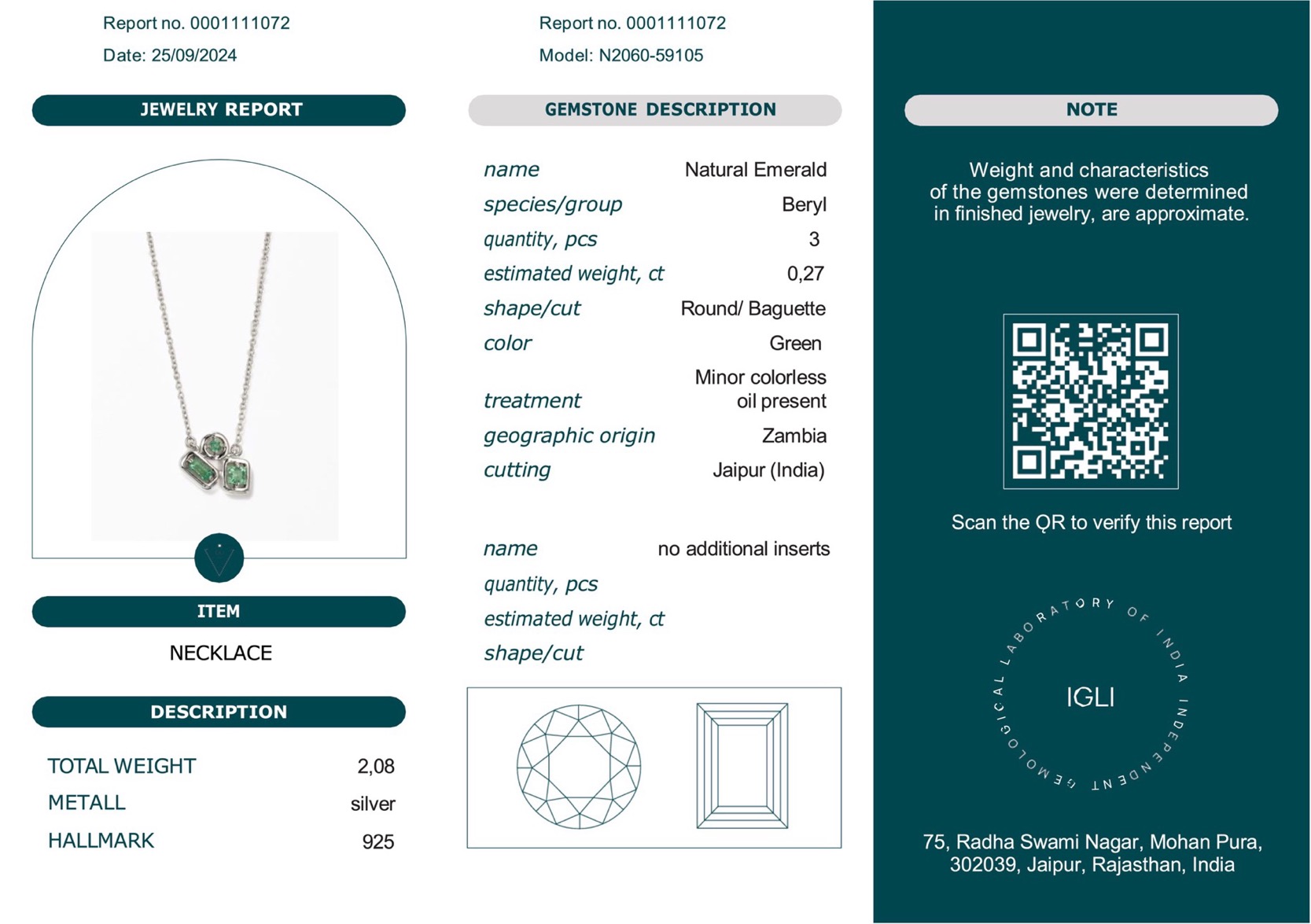 Это не просто колье — это твой модный манифест в серебре и изумрудах! Три драгоценных замбийских камня, каждый в своей уникальной оправе, рассказывают историю твоей многогранности. Утром на деловой встрече это украшение деликатно подчеркнет твой профессионализм, а вечером станет точкой притяжения восхищенных взглядов. Насыщенный зеленый цвет природных изумрудов оживит любой монохромный наряд, а геометрические формы оправ добавят твоему образу современную элегантность. Каждое движение — и камни ловят свет, напоминая всем вокруг о твоей внутренней силе и сияющей индивидуальности.
