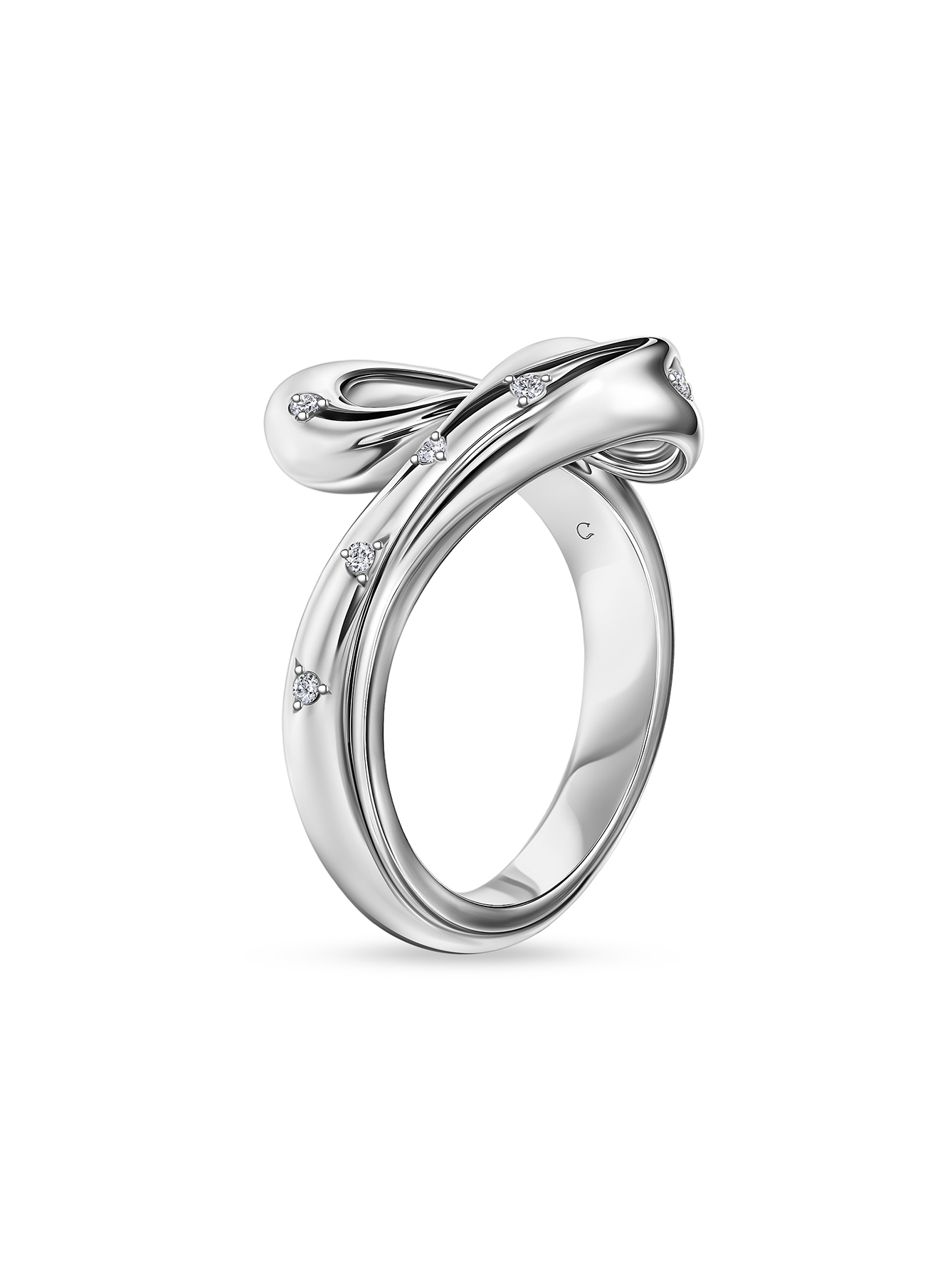 Это кольцо "Серебряная волна" – твой личный талисман творчества! Плавные изгибы серебра, словно морская волна, дополнены россыпью миниатюрных выращенных бриллиантов, которые создают эффект брызг в лучах солнца. Надень его на встречу с клиентами, когда нужно продемонстрировать свое креативное мышление, или на художественную выставку – и оно станет продолжением твоей творческой натуры. Это кольцо не просто украшает руку – оно напоминает о твоей способности преобразовывать мир вокруг себя!