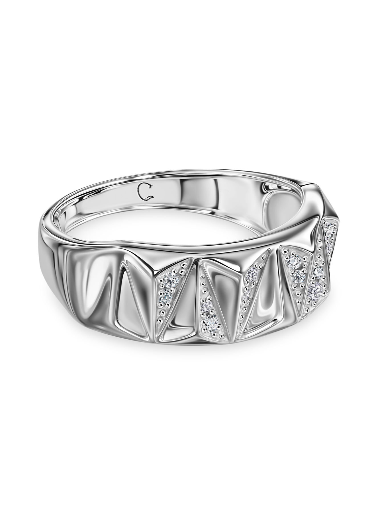 Архитектурное чудо из серебра на твоем пальце – это больше, чем просто кольцо! Геометрия граней напоминает городские небоскребы, а инкрустированные выращенные бриллианты добавляют сияние ночного мегаполиса. Носи его на деловых переговорах, чтобы показать свой структурированный подход, или на вечеринке, когда хочешь выделиться из толпы. Выращенные бриллианты – твой осознанный выбор в пользу этичной роскоши. Пока другие просто надевают украшения, ты рассказываешь миру о своем характере!