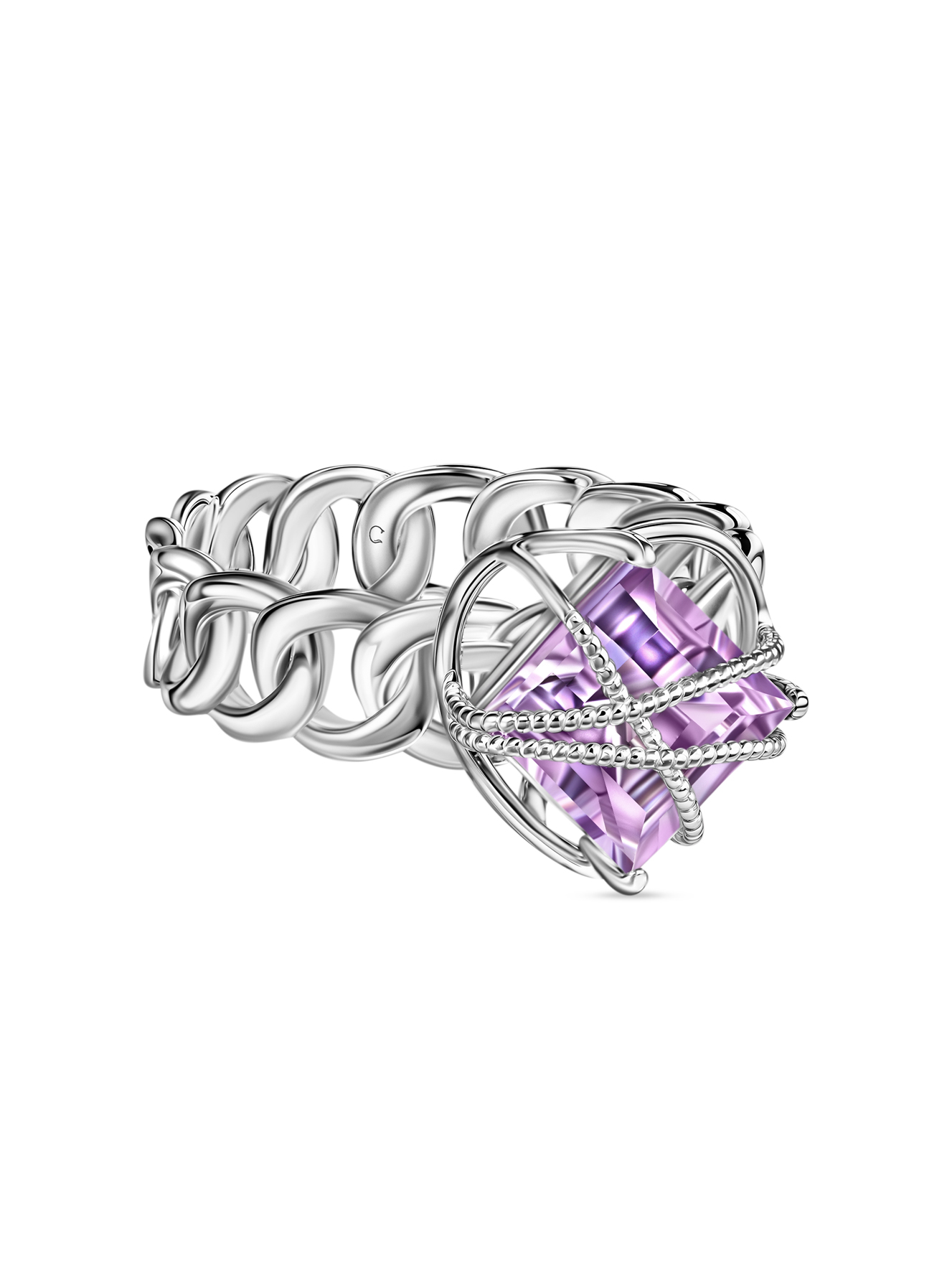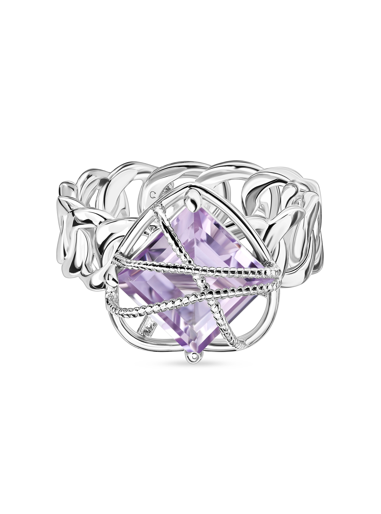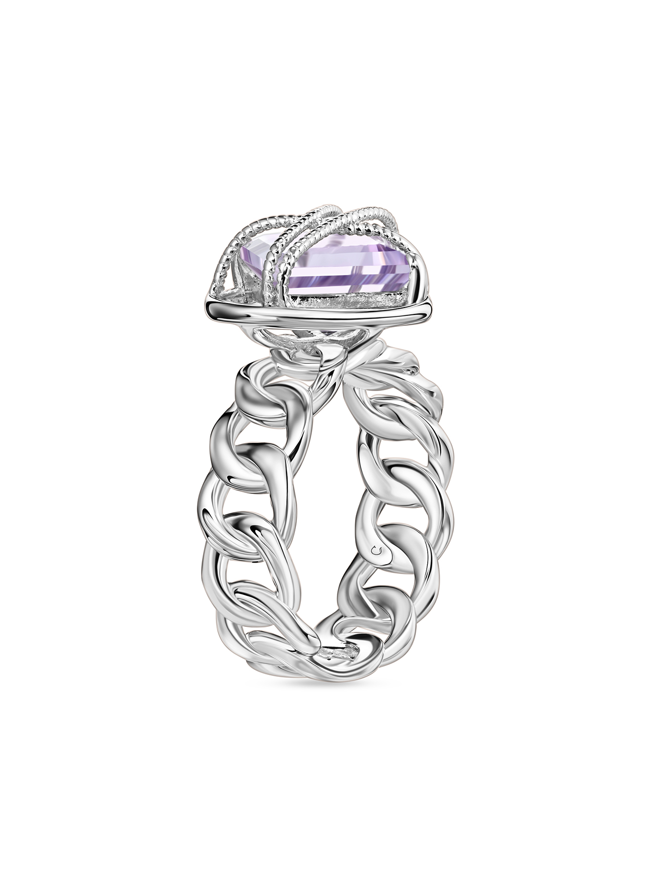 ✨ Это не просто кольцо – это твой личный амулет силы и женственности! Серебряный цепной дизайн с аметистовым кристаллом, обрамленным в геометрическую оправу, превращает каждый жест твоей руки в магический момент. Аметист приносит ясность мыслей и внутреннюю гармонию, а необычная форма кольца становится центром всех восхищенных взглядов. Надев его на деловую встречу или свидание, ты точно не останешься незамеченной. В каждом движении – частичка твоей энергии!