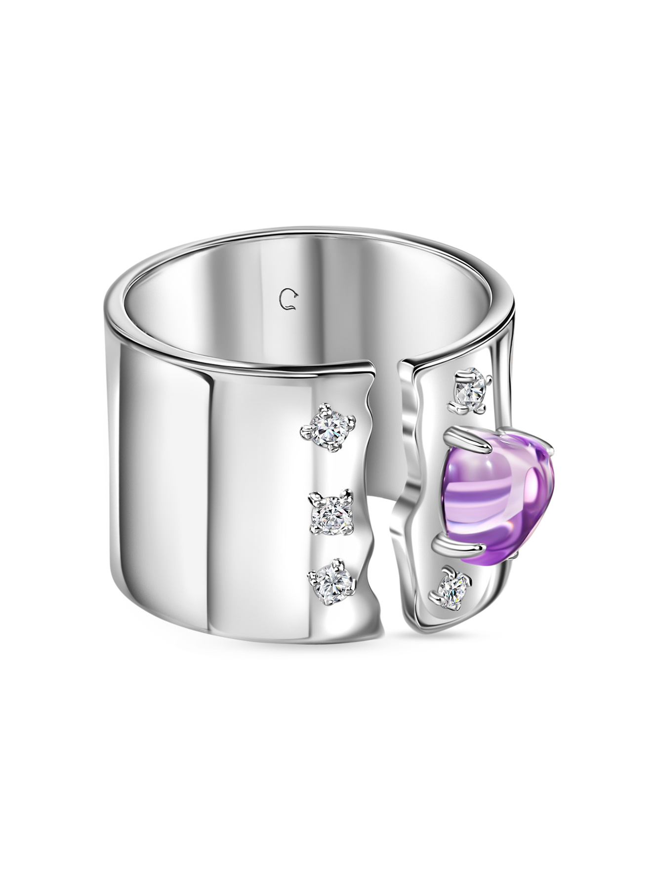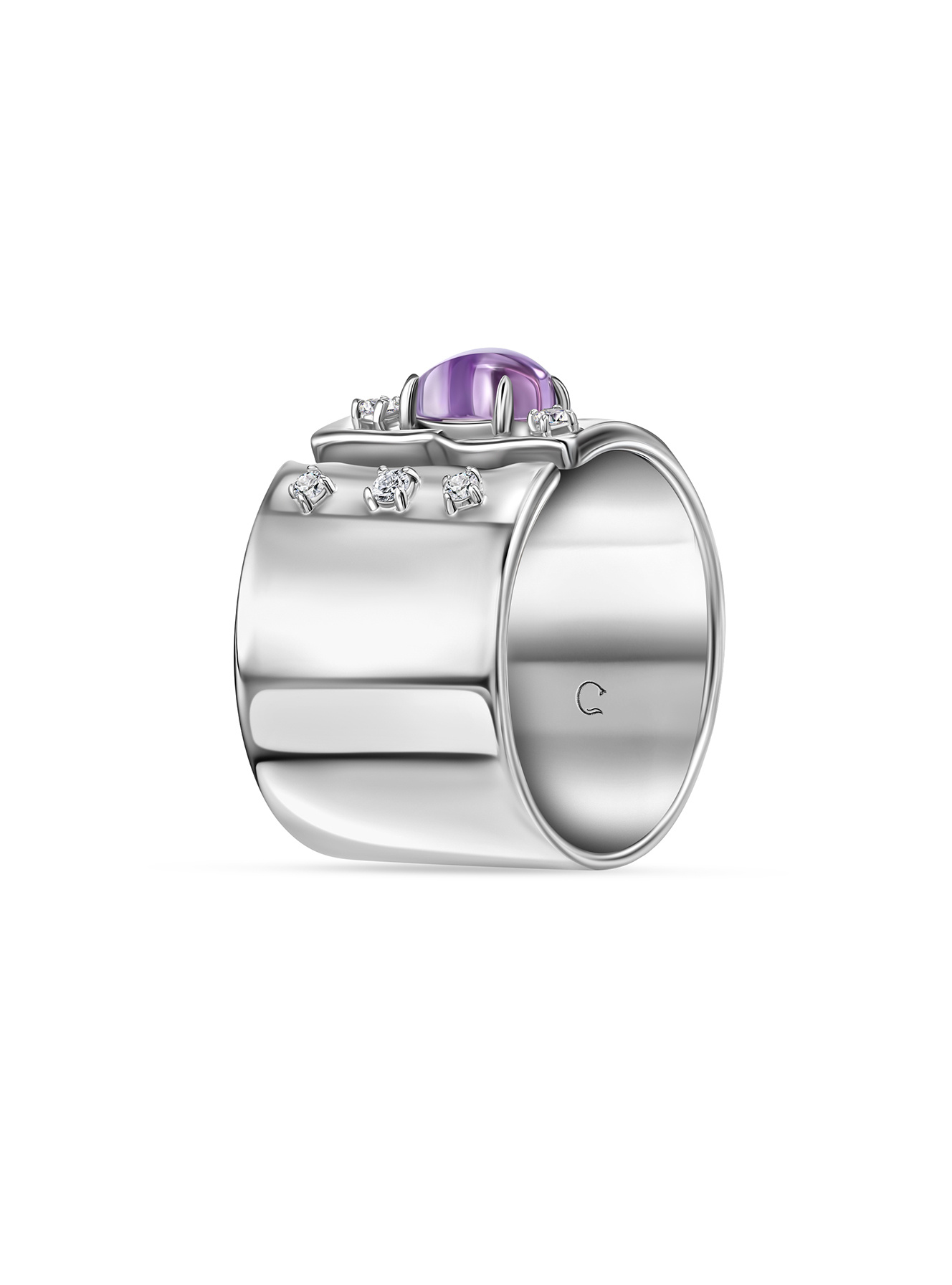 Это не просто кольцо – это твой персональный космический портал силы! Массивная серебряная основа смело заявляет о себе, а мистический аметист в окружении искрящихся бриллиантов создаёт эффект далёкой галактики на твоём пальце. Когда ты поворачиваешь руку, мерцающие камни создают игру света, которая заставляет окружающих задерживать взгляд. Это выбор для тех, кто знает: настоящая сила не в громких словах, а в уверенных жестах.