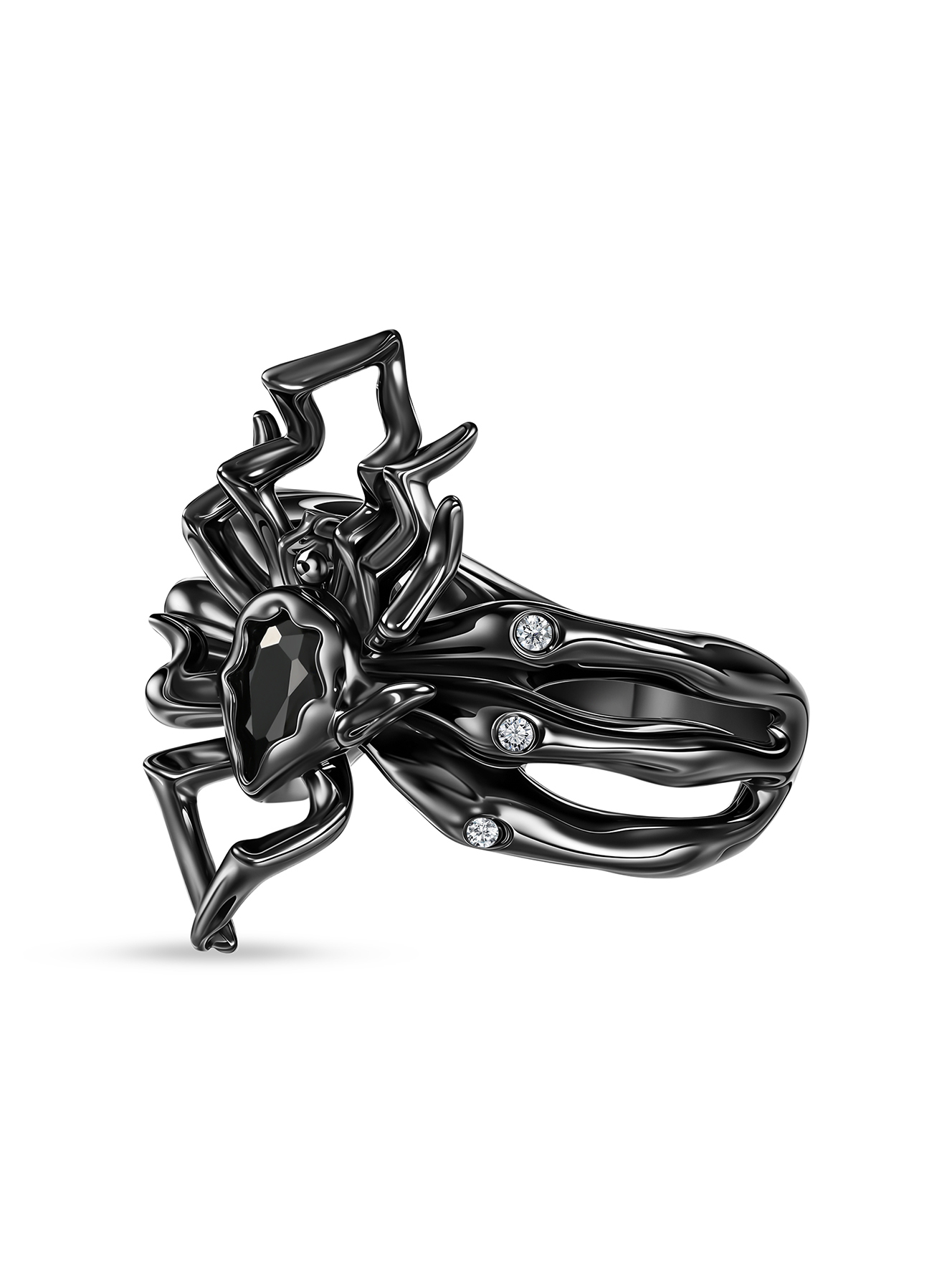 Кольцо паук с бриллиантами и шпинелью