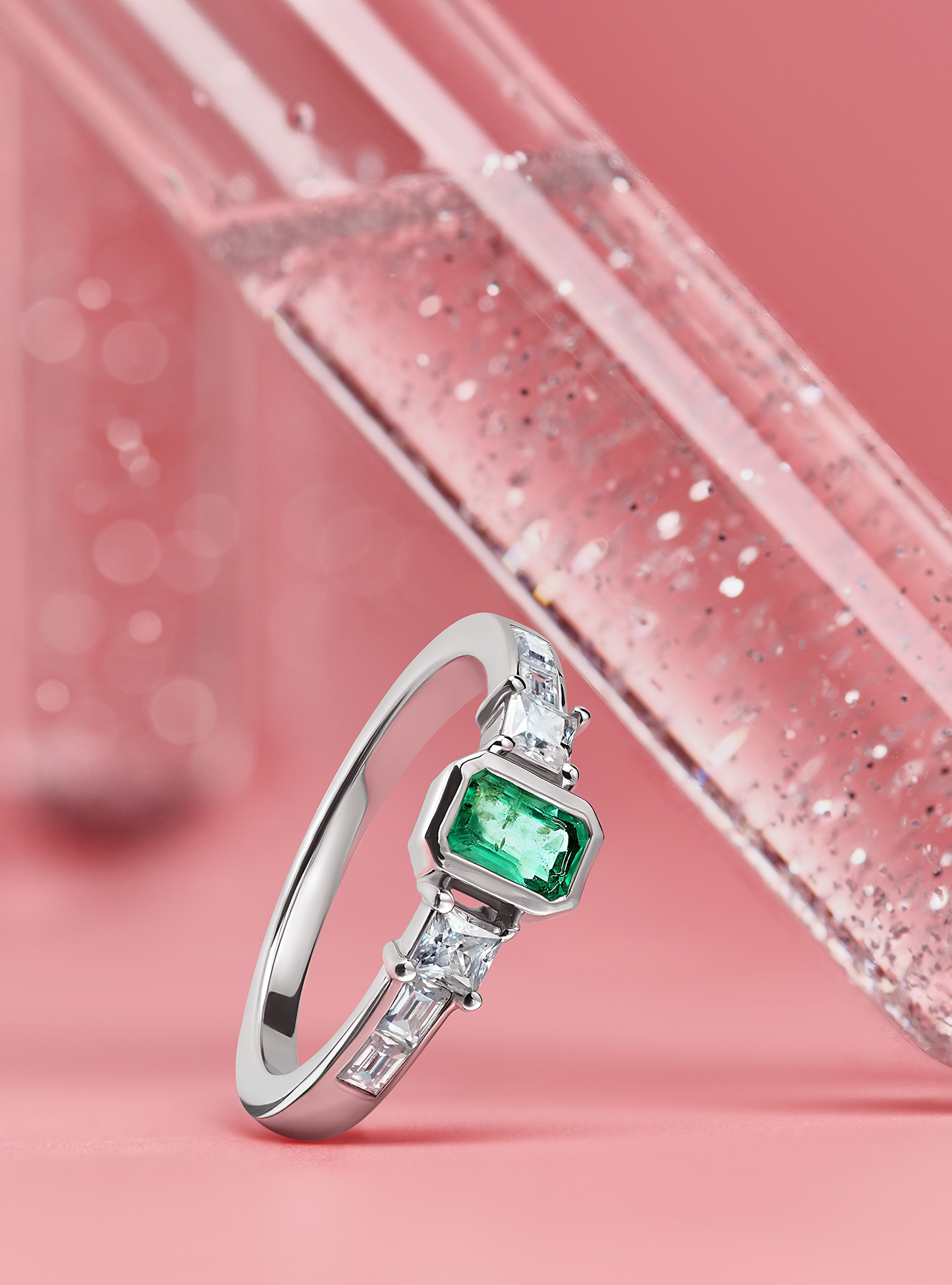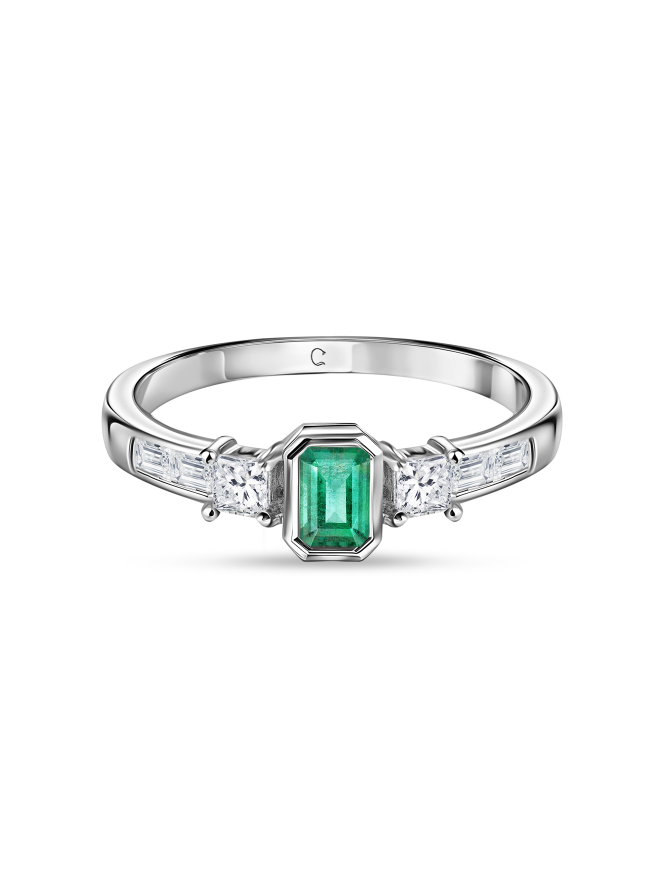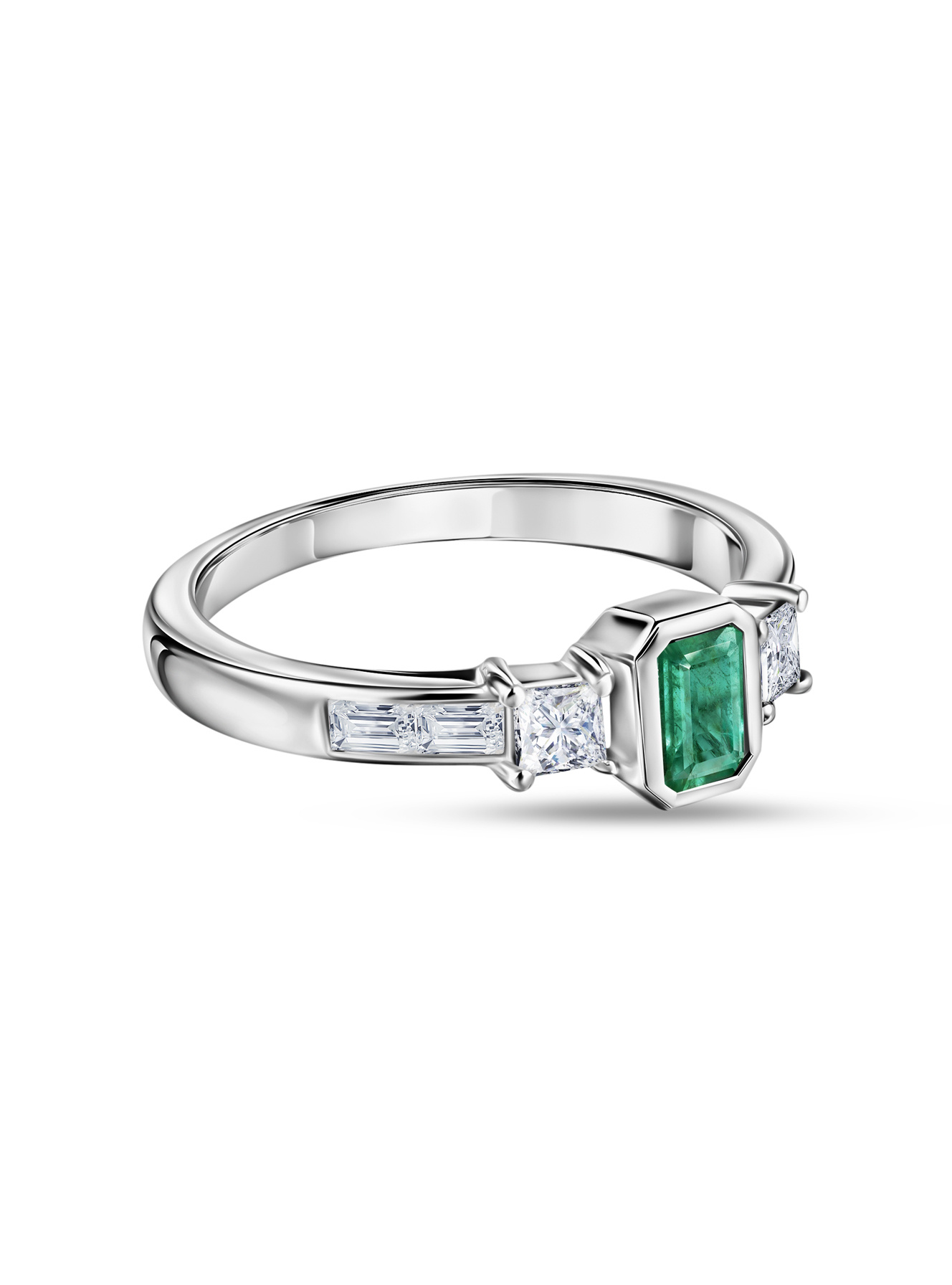 Кольцо с природными замбийскими изумрудами и муассанитами