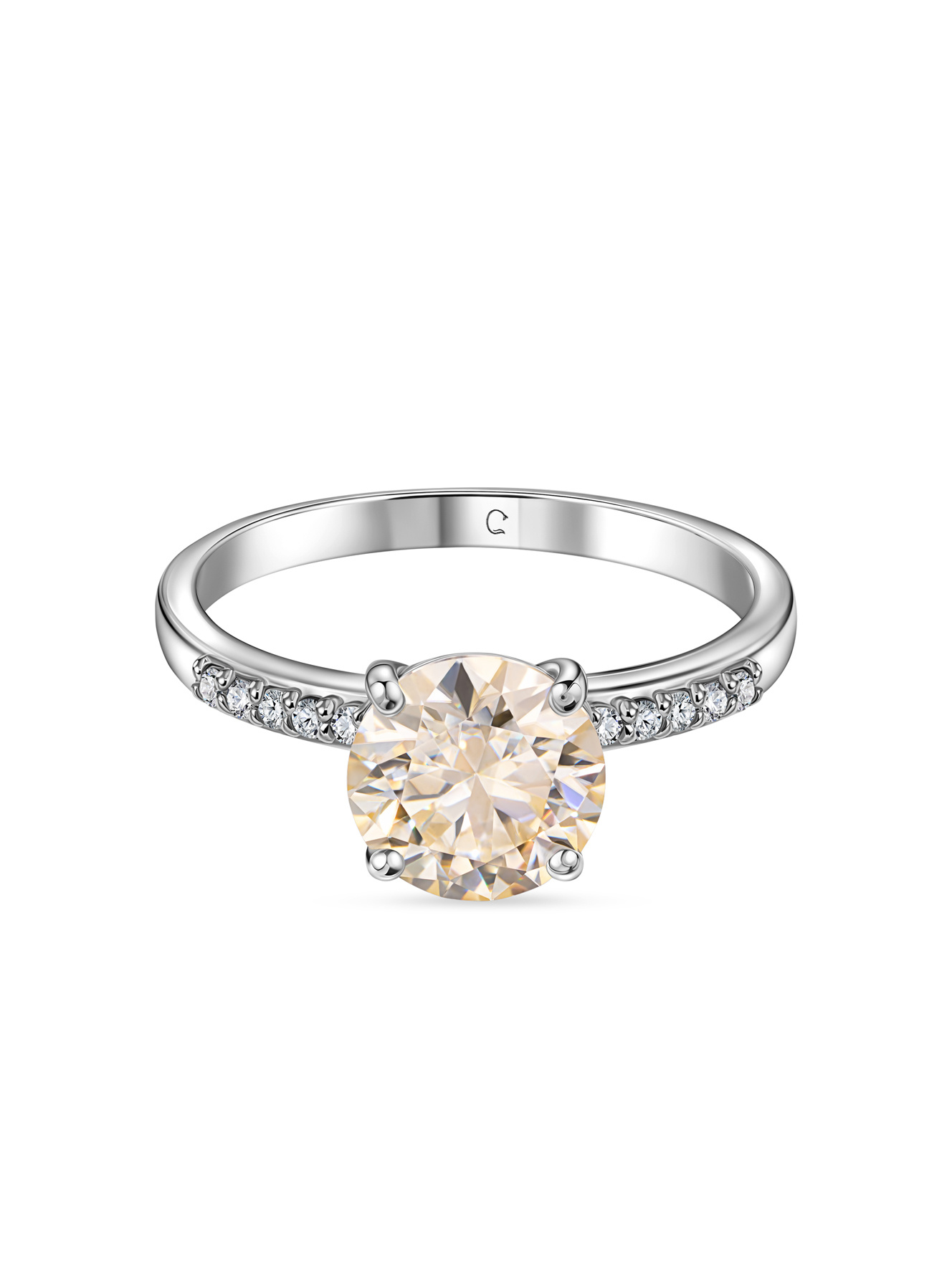 Это не просто кольцо – это твой личный луч солнца в серебряной оправе! Сияющий муассанит цвета шампань выглядит так благородно, будто ты носишь на пальце золотистый рассвет. Дорожка искрящихся бриллиантов на шинке создаёт эффект парящего камня, притягивая взгляды даже в тусклом освещении. Даже с базовым чёрным платьем ты будешь выглядеть так, словно только что закрыла важную сделку в своём стартапе. Это украшение для тех, кто ценит этичную роскошь и умеет быть в центре внимания, не повышая голоса.