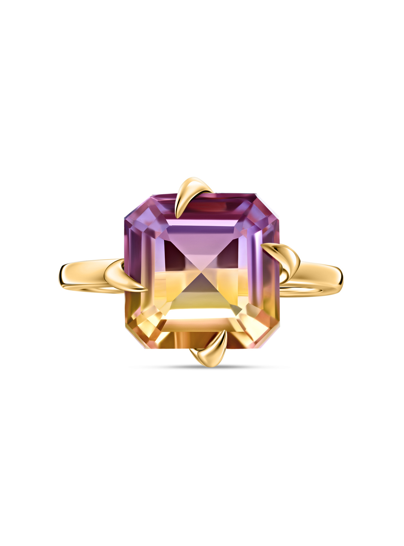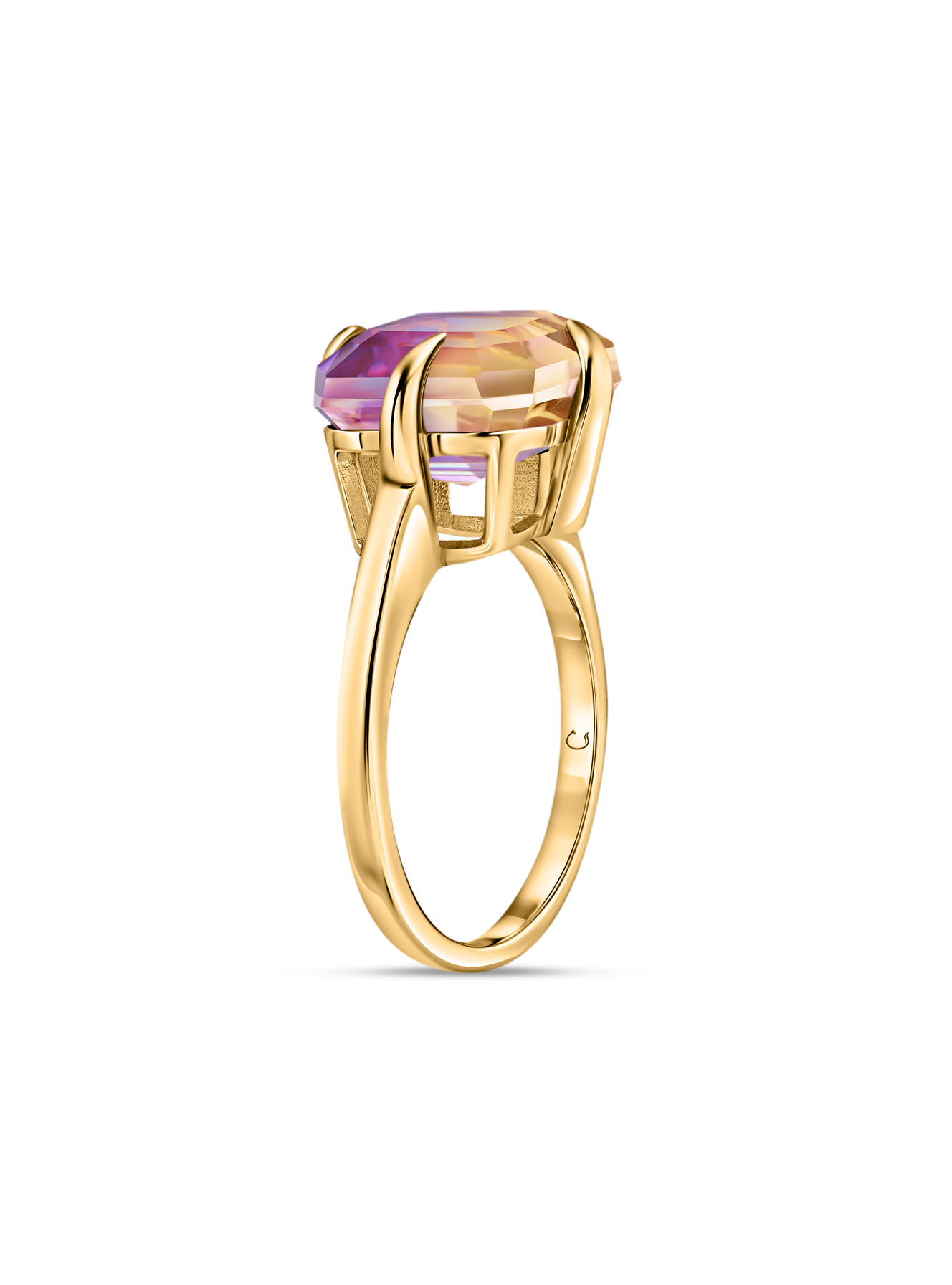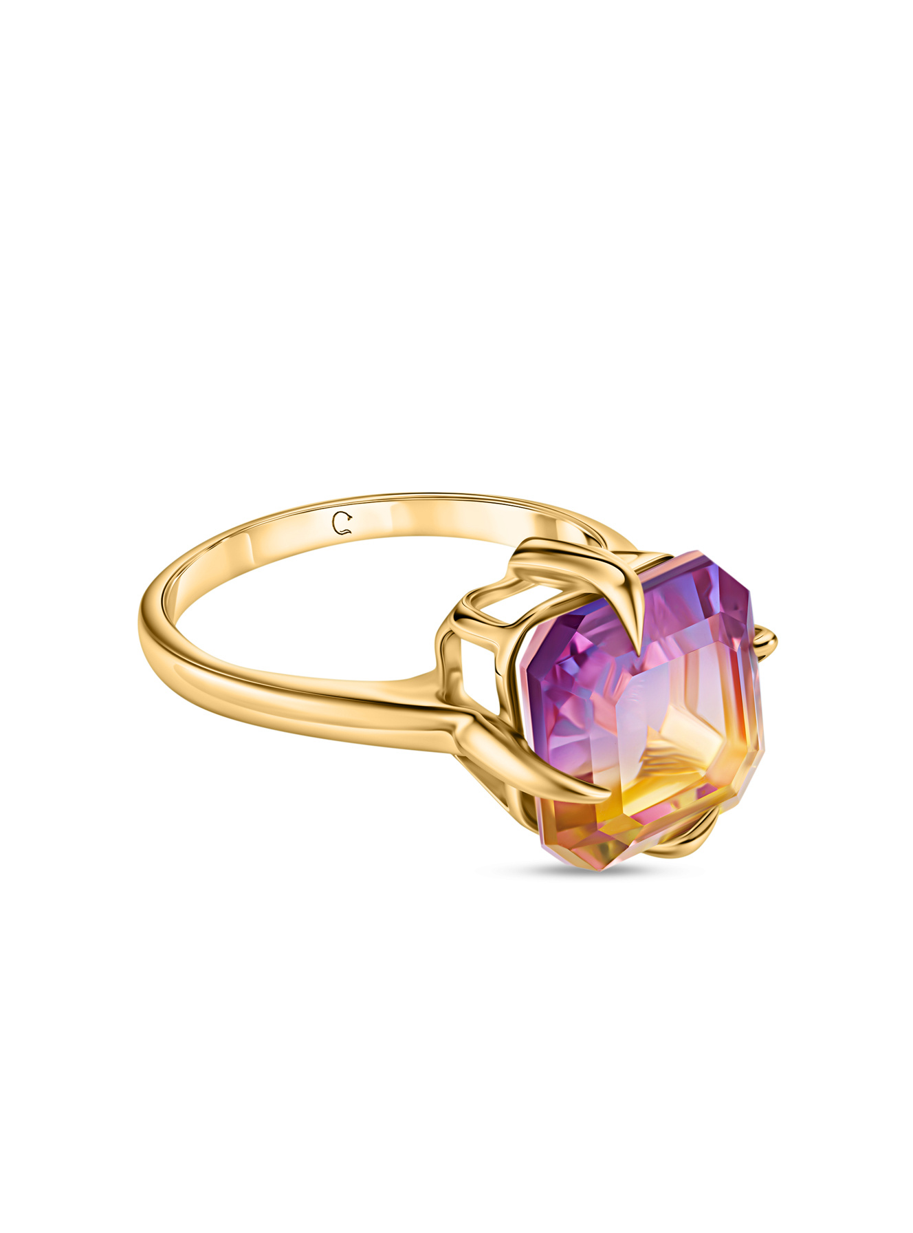 Это не просто кольцо – это персональный закат солнца, заключенный в позолоченные объятия! Удивительный аметрин (биколор) играет всеми оттенками заката – от янтарных до фиолетовых тонов, меняя настроение при каждом движении руки. Необычная оправа в виде художественных позолоченных лучей только подчеркивает уникальность камня. Представь, как этот небольшой шедевр преобразит твой образ на важной презентации или романтическом ужине. В лучах света камень раскрывается во всей красе, притягивая восхищенные взгляды. Пока другие просто носят украшения, ты рассказываешь свою историю – яркую и многогранную, как этот биколор!