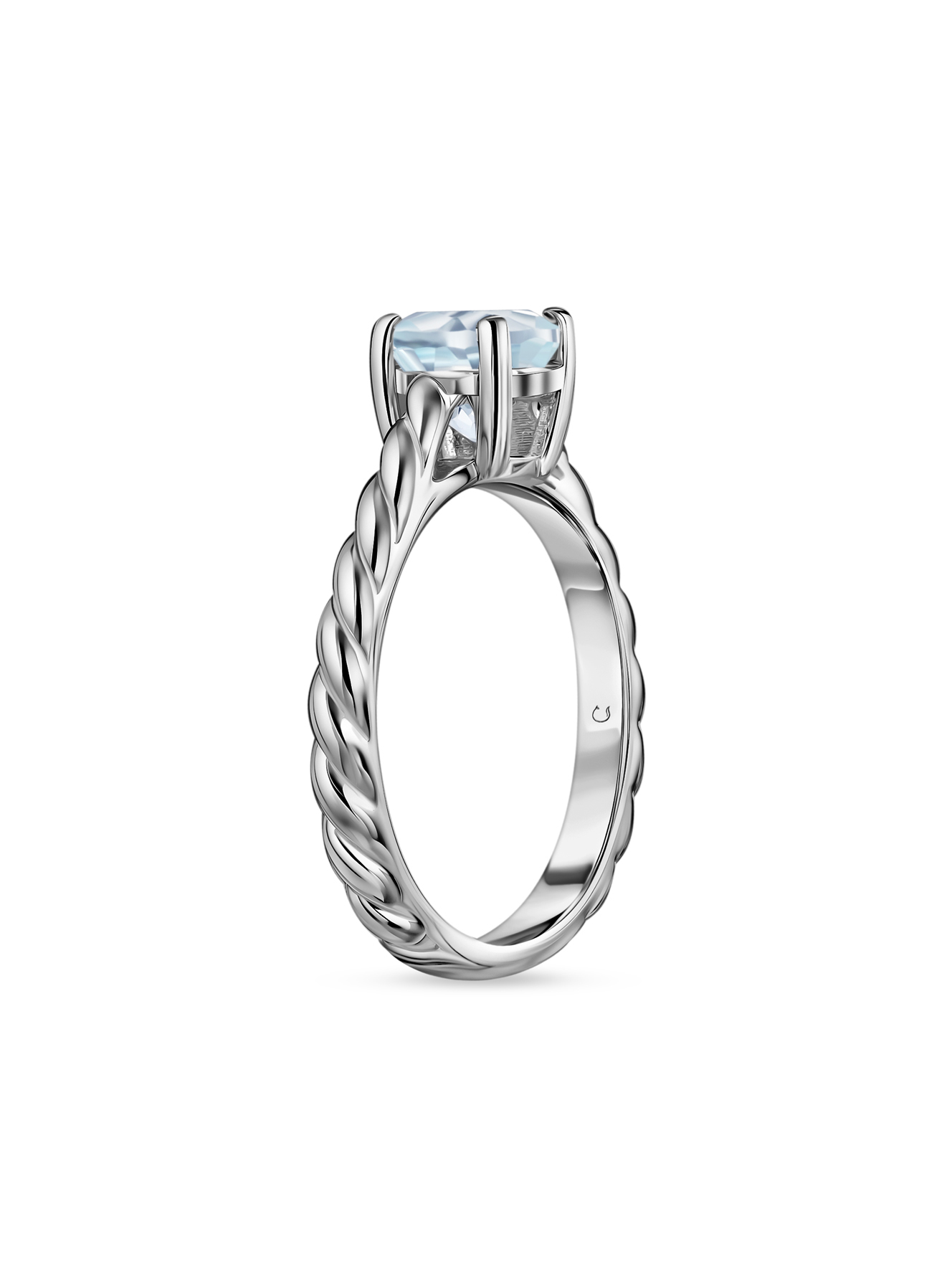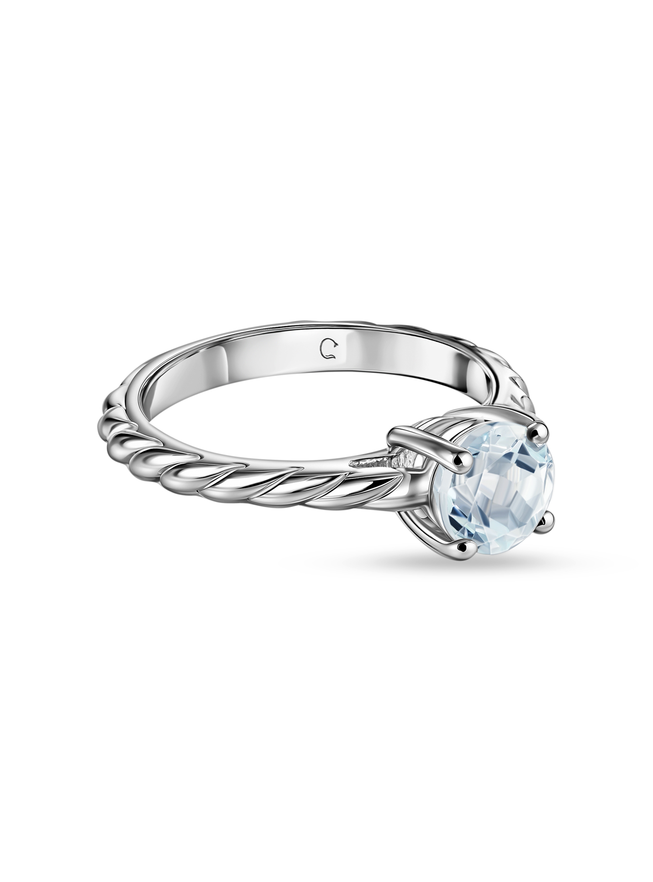 У аквамарина благородное берилловое приосхождение. Высокая твердость и цвет морской воды в ладошке. Это редкий гость в России, но мы любим привозить все редкое. Даже из Бразилии, где находятся его месторождения.