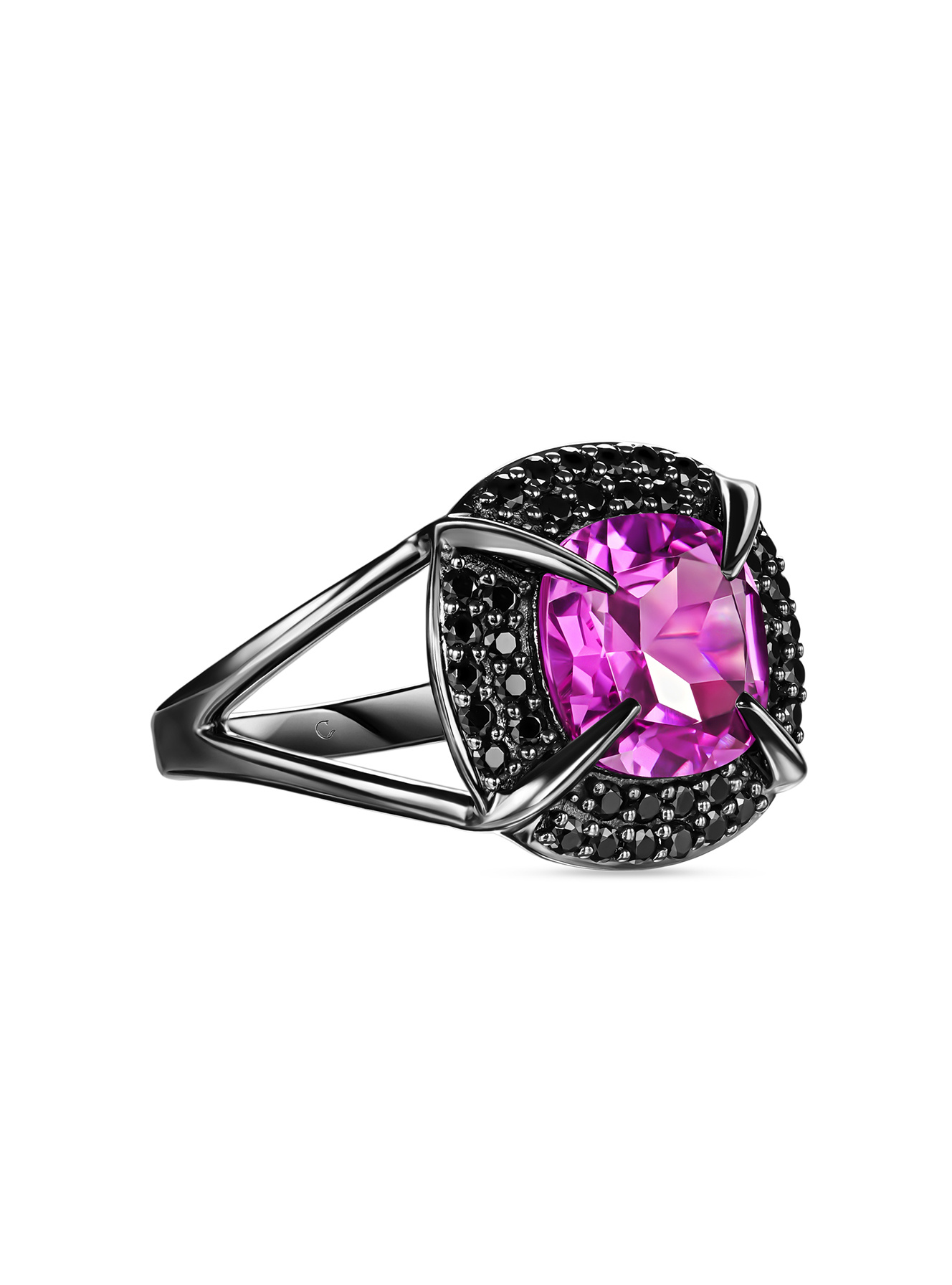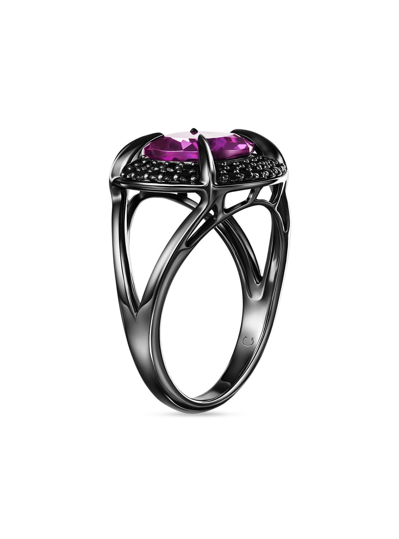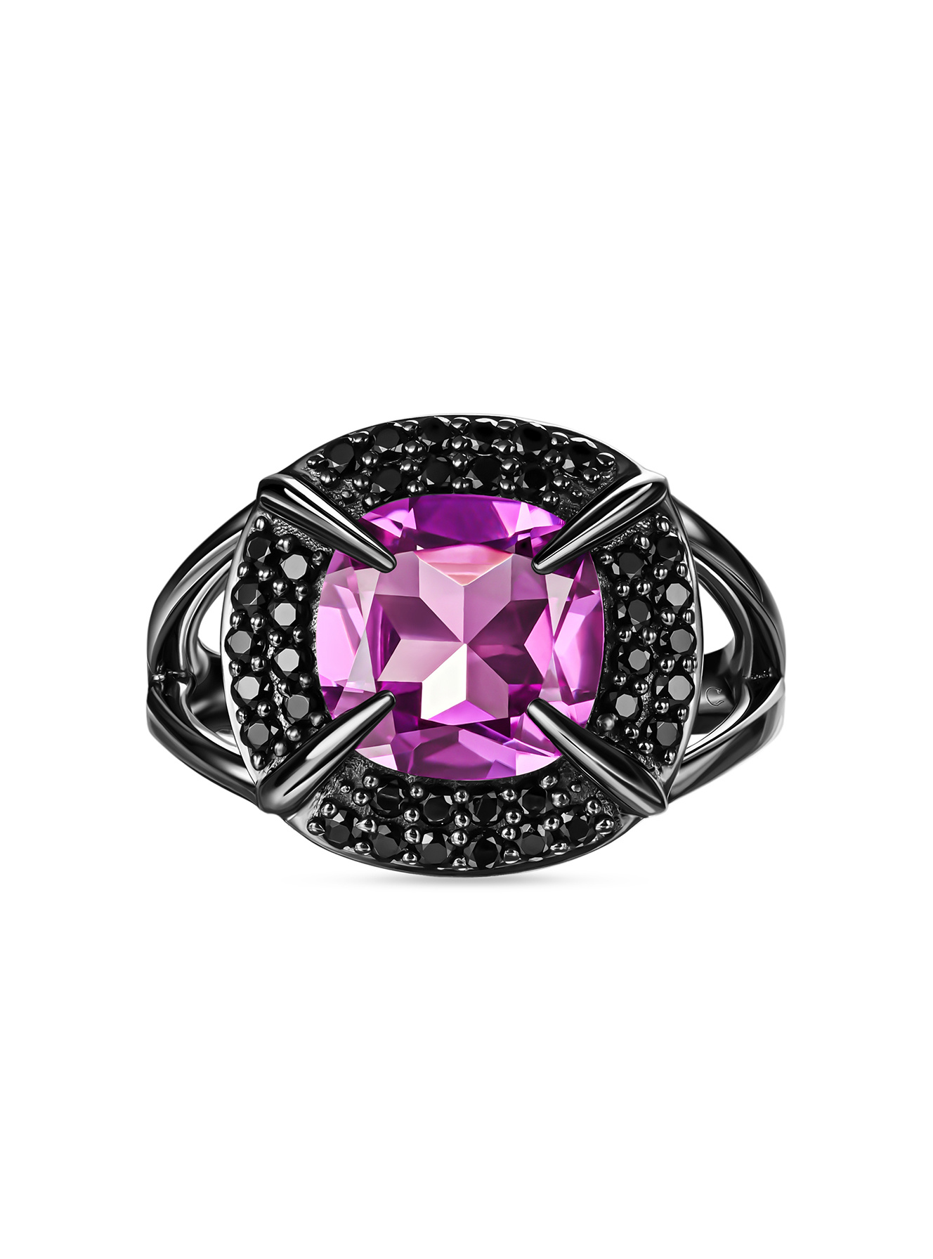 Это не просто кольцо – это твой личный портал в мир таинственного шика! Сочный александрит в обрамлении черной шпинели – идеальное сочетание для тех, кто не боится быть в центре внимания. Глубокий черный родий подчеркивает магический фиолетовый оттенок центрального камня, создавая эффект ночного неба с загадочной звездой. Массивная форма делает кольцо заметным, но при этом не перегруженным. Идеально дополнит как дерзкий рок-образ с кожаной курткой, так и элегантное вечернее платье. Пока другие просто носят украшения, ты рассказываешь свою историю!