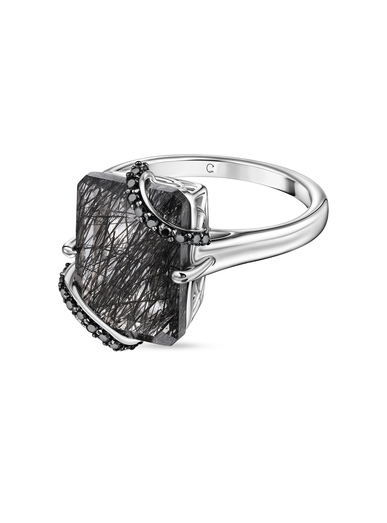 Кольцо-откровение с рутиловым кварцем и черной шпинелью – твой секретный код к безупречному стилю! Серебряное основание элегантно обнимает прямоугольный рутиловый кварц, внутри которого – целая вселенная загадочных черных нитей. Черная шпинель, словно стражи, обрамляет камень с двух сторон, придавая украшению дерзкий характер. В офисе это кольцо станет твоим талисманом уверенности, а на свидании – поводом для комплиментов. Рутиловый кварц не только притягивает взгляды, но и считается камнем, усиливающим твою природную интуицию. Надев его однажды, ты почувствуешь, как даже повседневный образ приобретает глубину и загадочность.