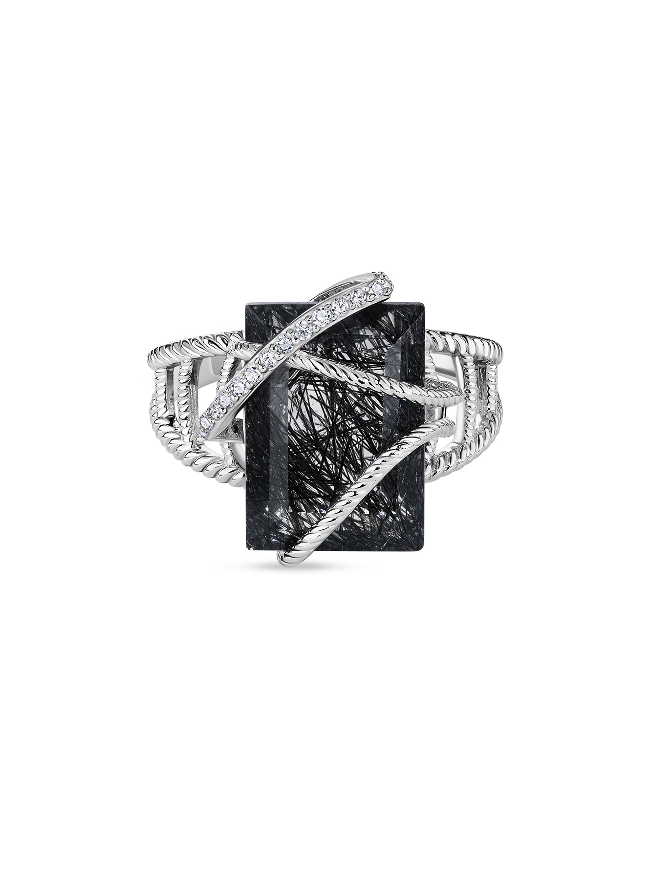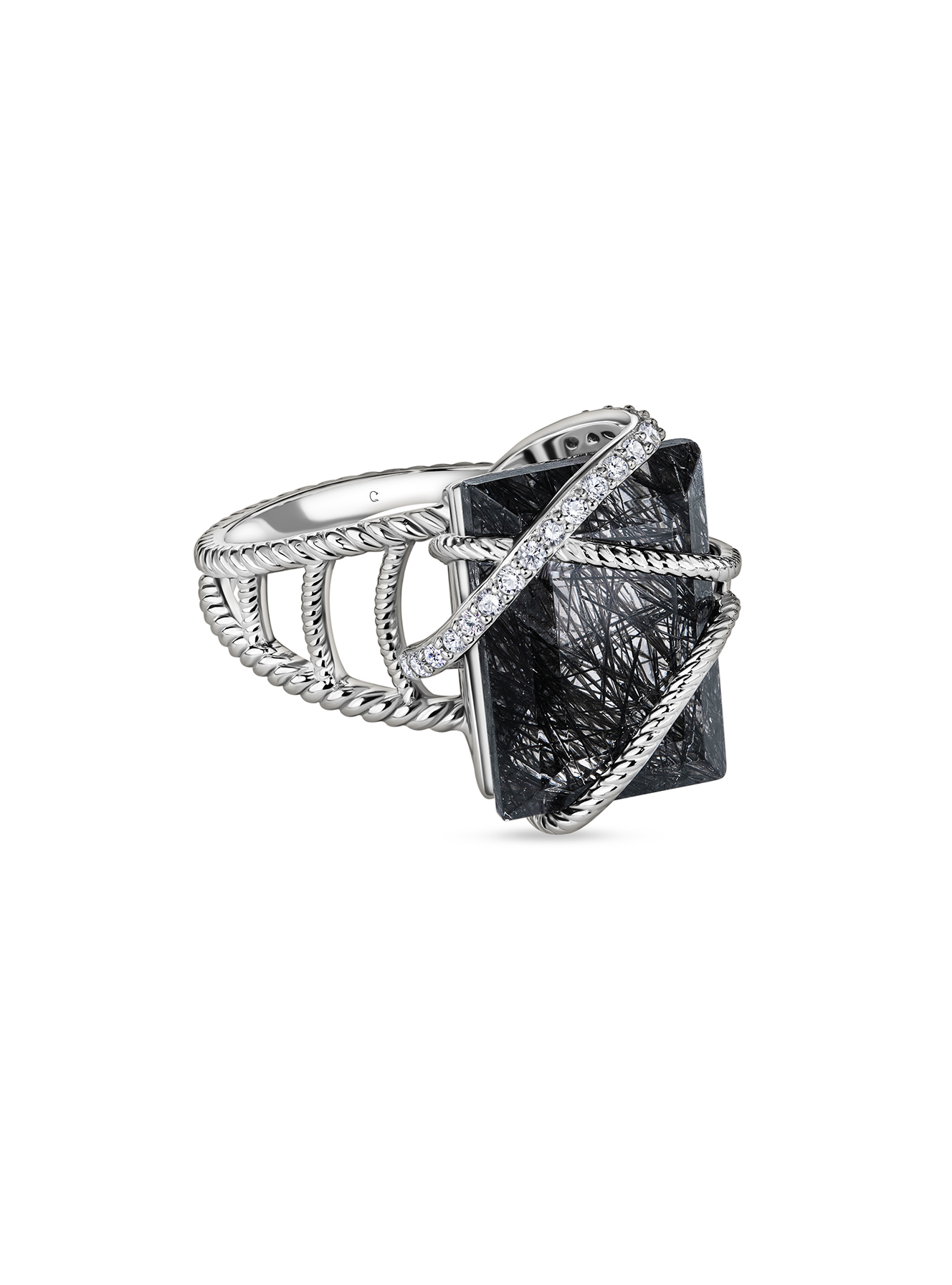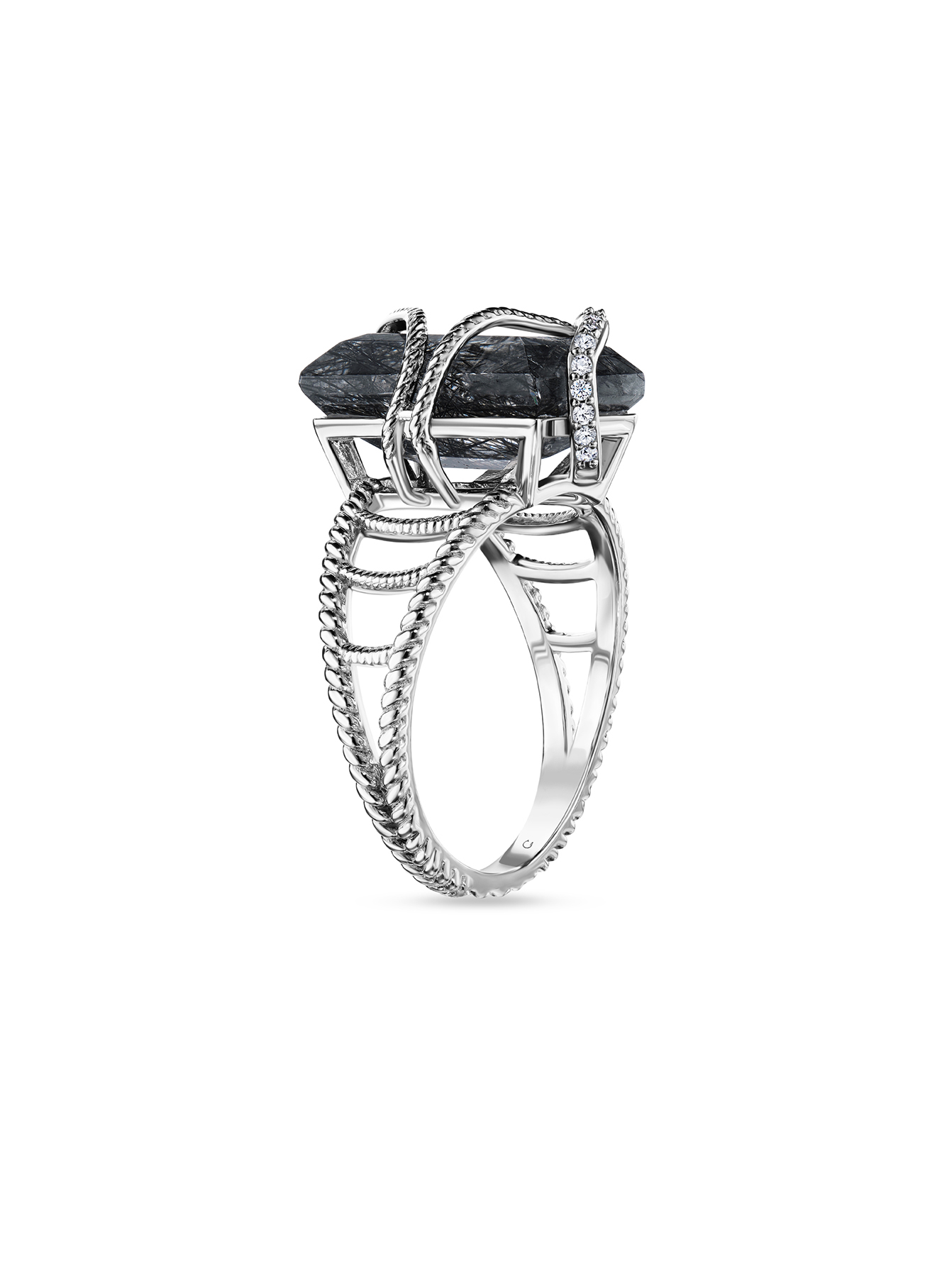 Кольцо с бриллиантами и рутиловым кварцем граффити