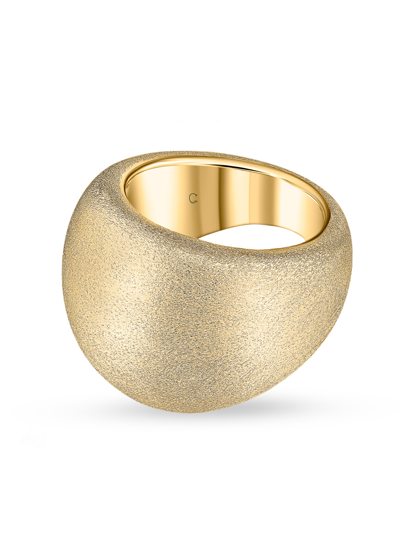 Это не просто кольцо – это твой личный кусочек солнца! Массивная позолоченная форма с матовой фактурой словно впитала в себя летние лучи и теперь готова согревать тебя в любую погоду. Его смелый объем и минималистичный дизайн делают его настоящим заявлением – ты точно не останешься незамеченной! Идеально подходит как для особых случаев, так и для повседневной жизни, когда хочется добавить ВАУ-эффект к базовому образу. Носи его соло – этому кольцу не нужны компаньоны, чтобы блистать!