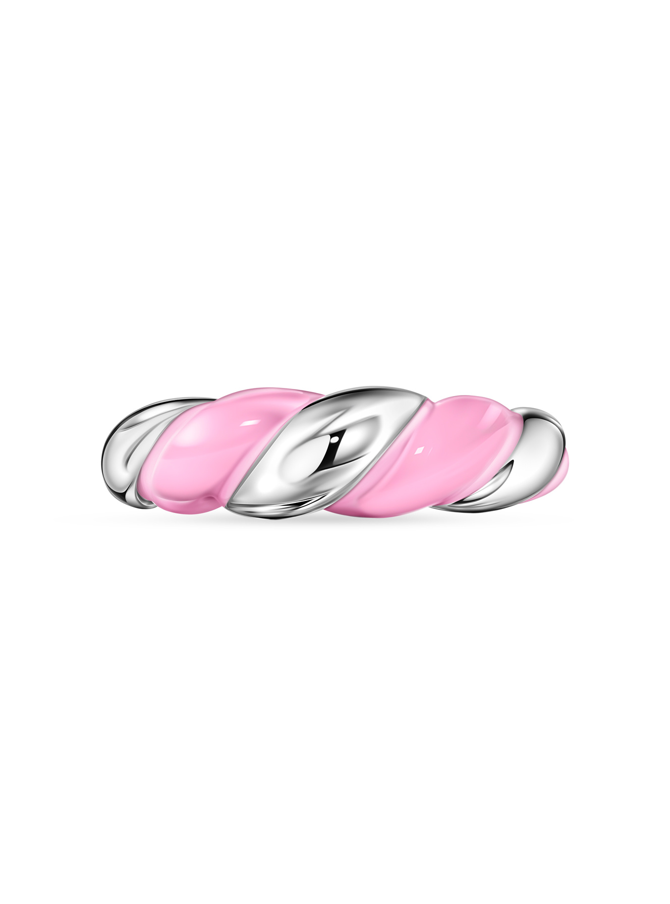 Витое кольцо с розовой эмалью