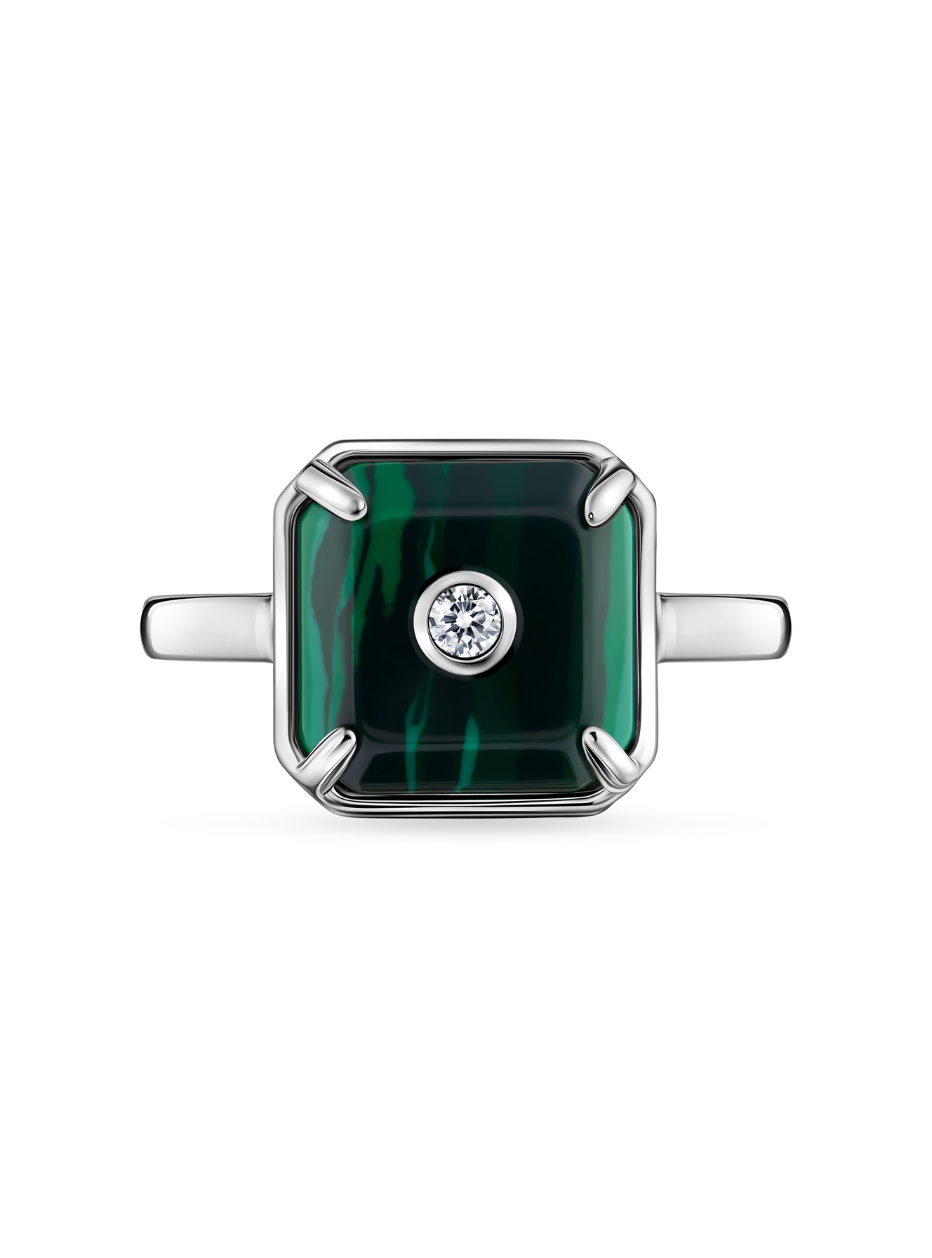Кольцо с бриллиантом и малахитом