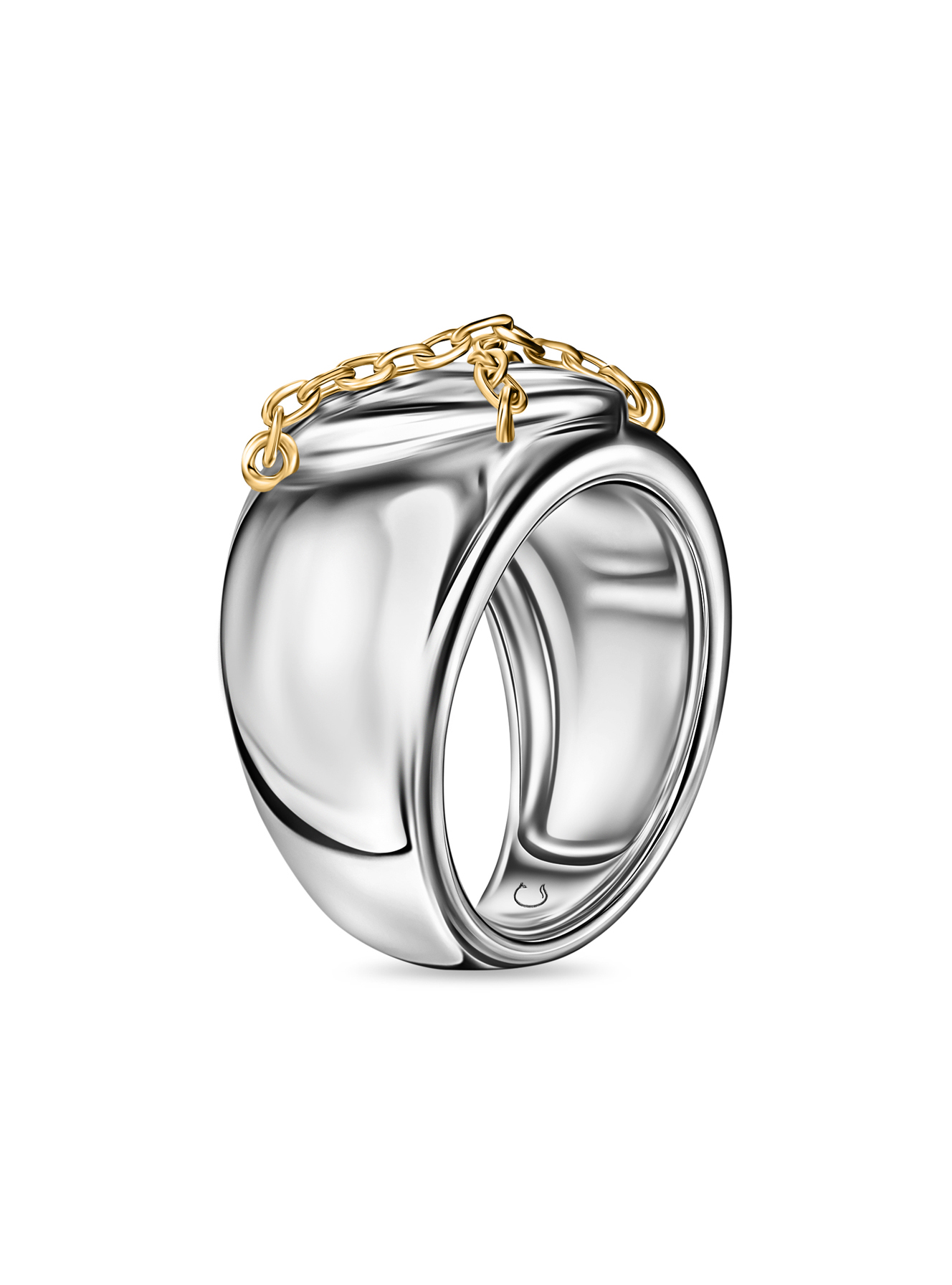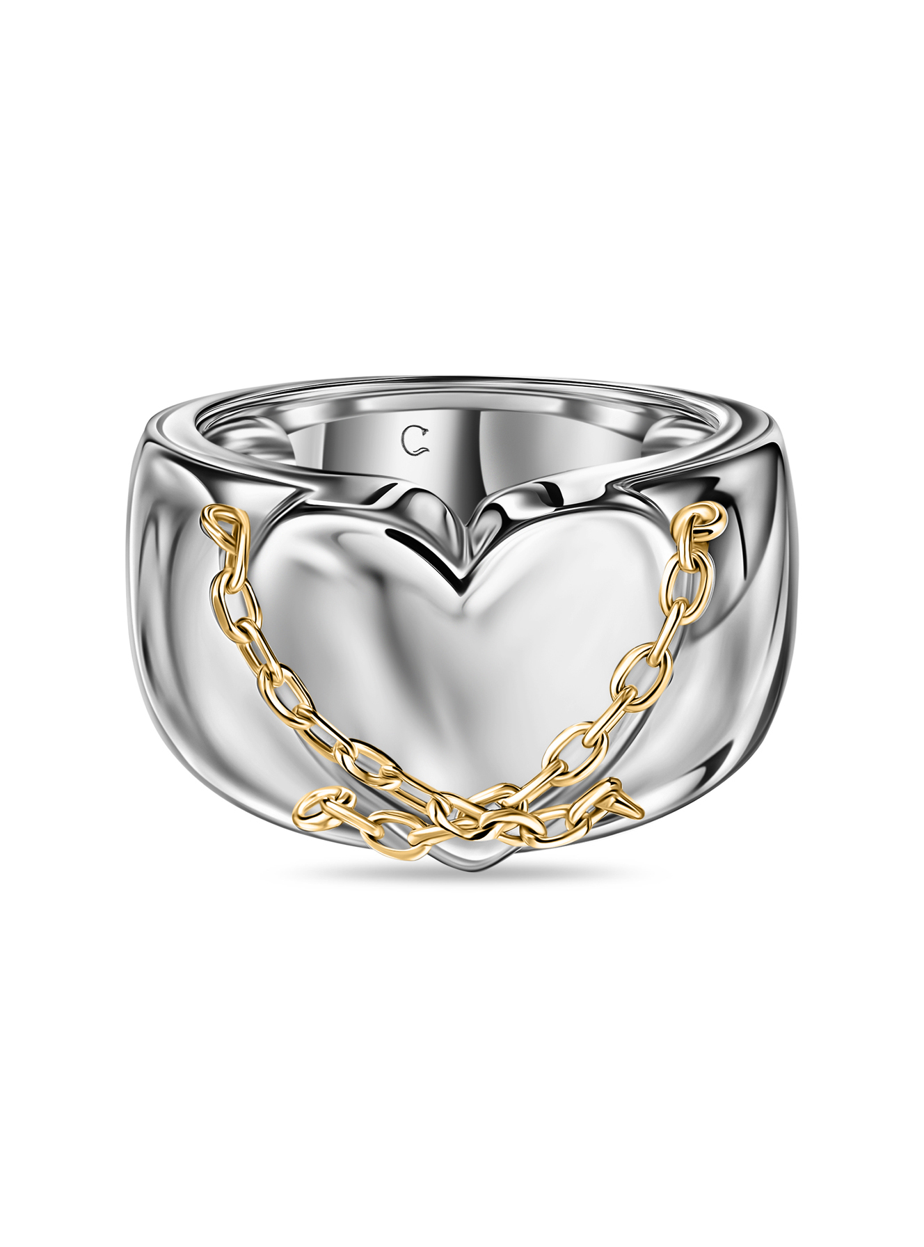 Кольцо сердце с позолоченными цепями