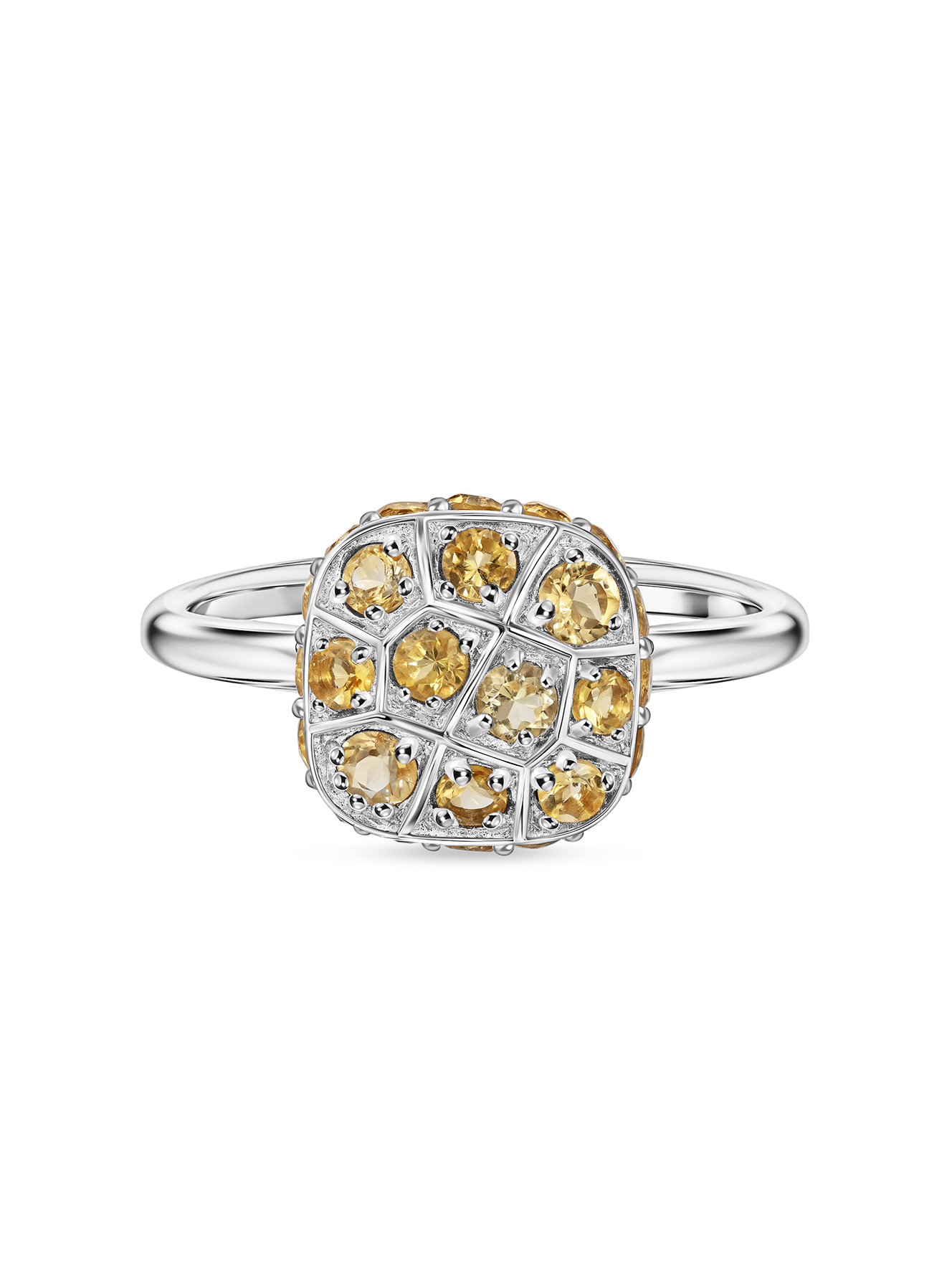 Это не просто кольцо – это солнечный зайчик на твоей руке! Россыпь солнечных цитринов в серебряной оправе создаёт неповторимую игру света и тени. Геометрический дизайн верхушки добавляет современный характер даже классическому образу. Надев его однажды, ты заметишь, как коллеги на совещании невольно задерживают взгляд на твоей руке, а в лучах заходящего солнца оно вдруг вспыхивает золотистым сиянием, словно маленькая вселенная на твоём пальце. В каждом движении – твоя уникальная энергия и стиль!
