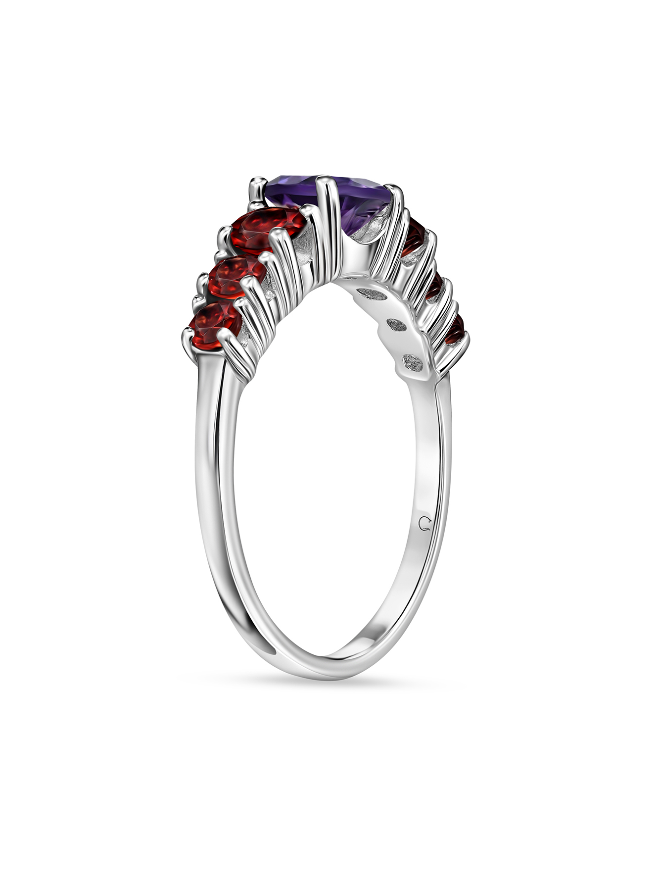 Это не просто кольцо – это твой персональный артефакт силы и женственности! Серебряное колечко, где глубокий пурпурный аметист царственно возвышается среди огненно-красных гранатов, станет центральным элементом любого образа. Представь, как ты запускаешь презентацию, а все взгляды прикованы к твоей руке с этим сокровищем! Яркое сочетание камней не просто притягивает внимание – оно рассказывает о твоей многогранной натуре: страстной и романтичной одновременно. В каждом камне – частичка твоей уникальной энергии!