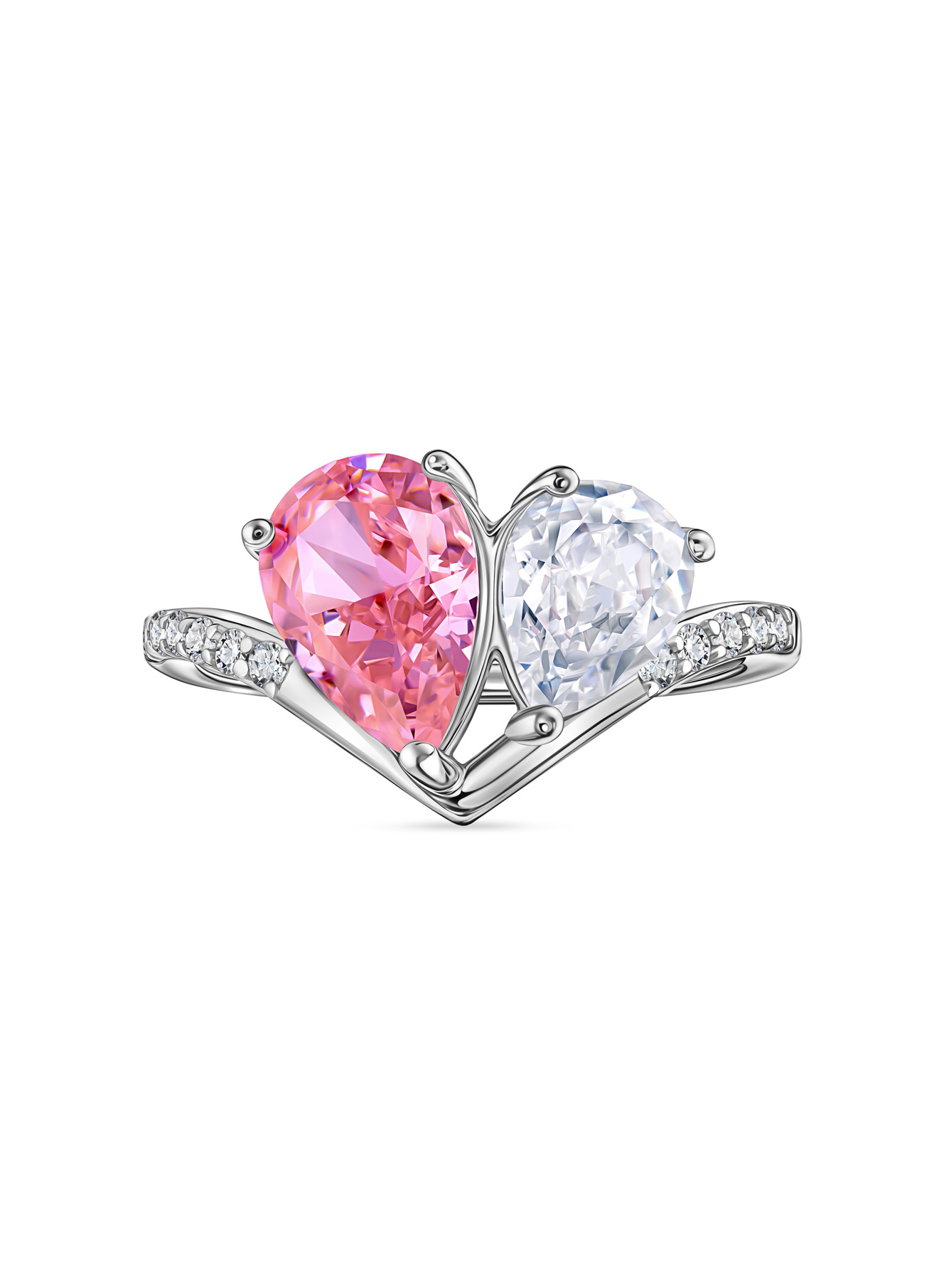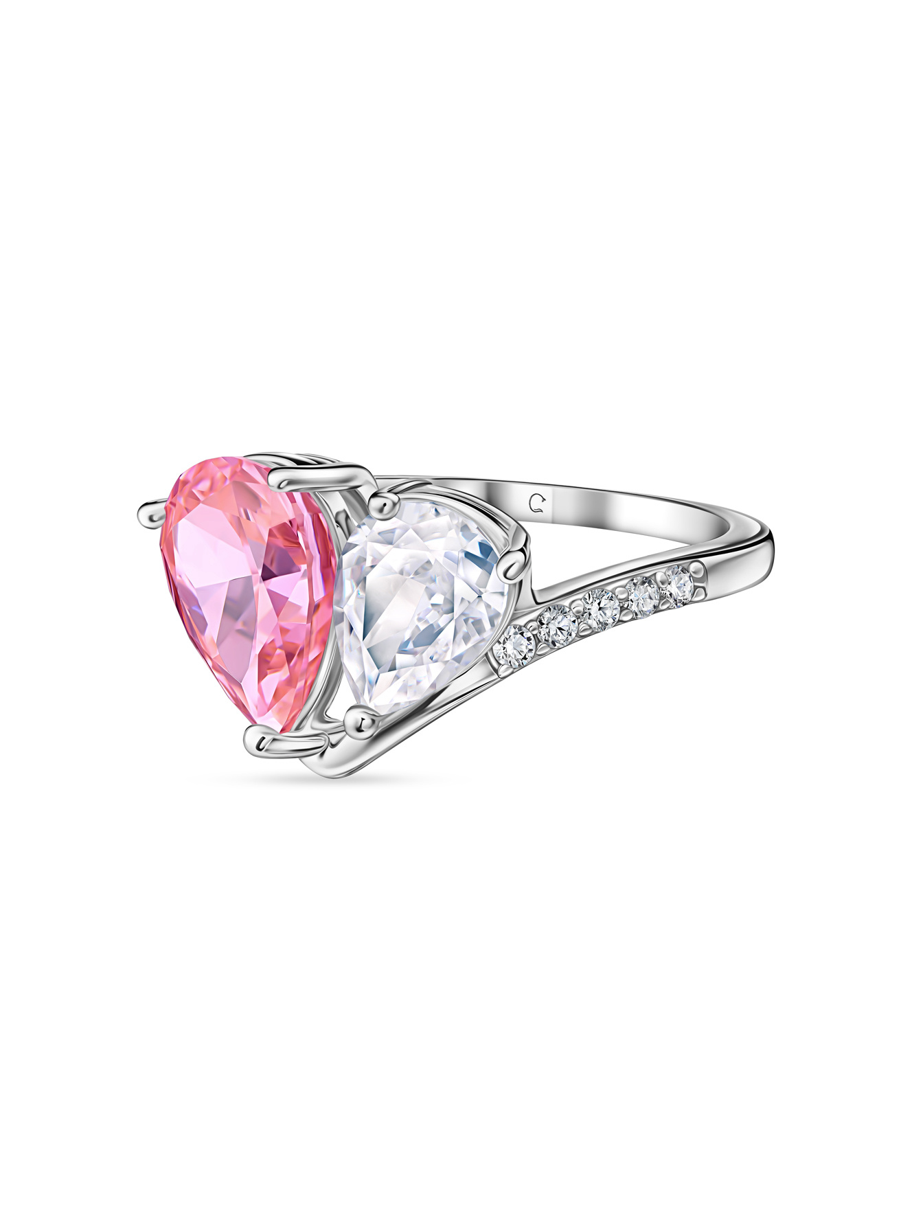 Это не просто кольцо – это твой личный союз нежности и элегантности! Сверкающий тандем розового и прозрачного фианитов, словно два влюбленных сердца, обрамленные серебряной лаской. Сияющая дорожка кристаллов на изящной полосе придает образу роскоши, не перегружая его. Идеально для романтических встреч и особенных событий, но почему бы не добавить каплю волшебства и в повседневность? В каждом блике – отражение твоей чувственной натуры. Каплевидная огранка камней создает плавный танец света на твоих пальцах!