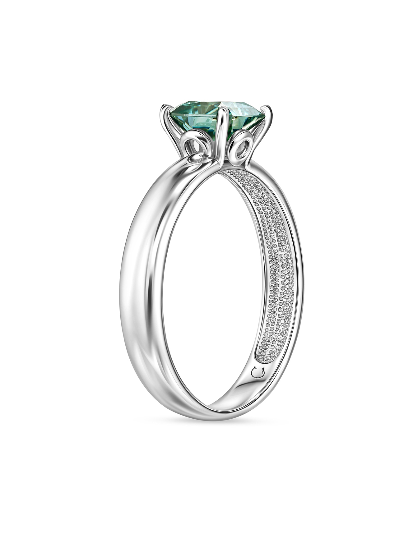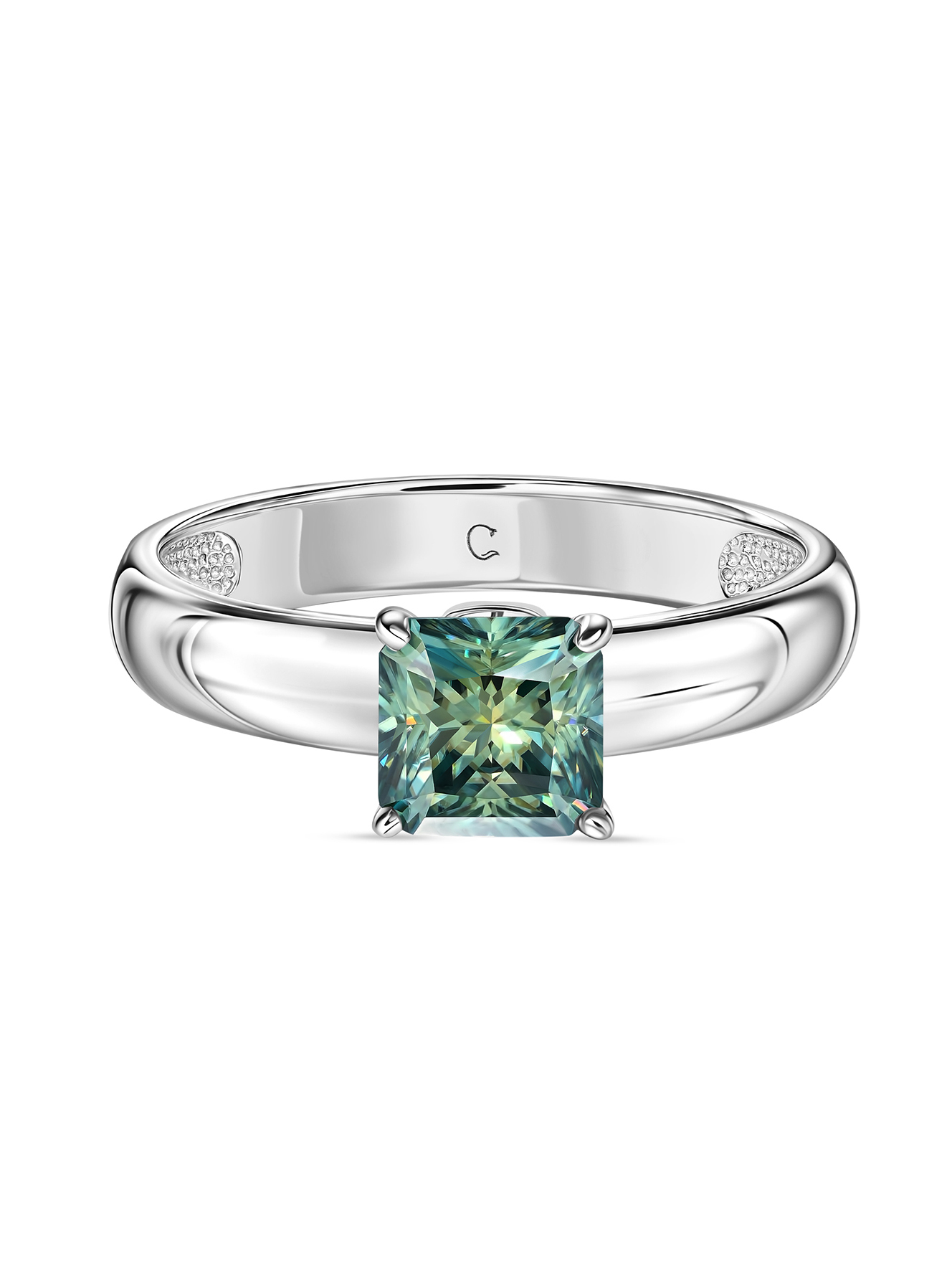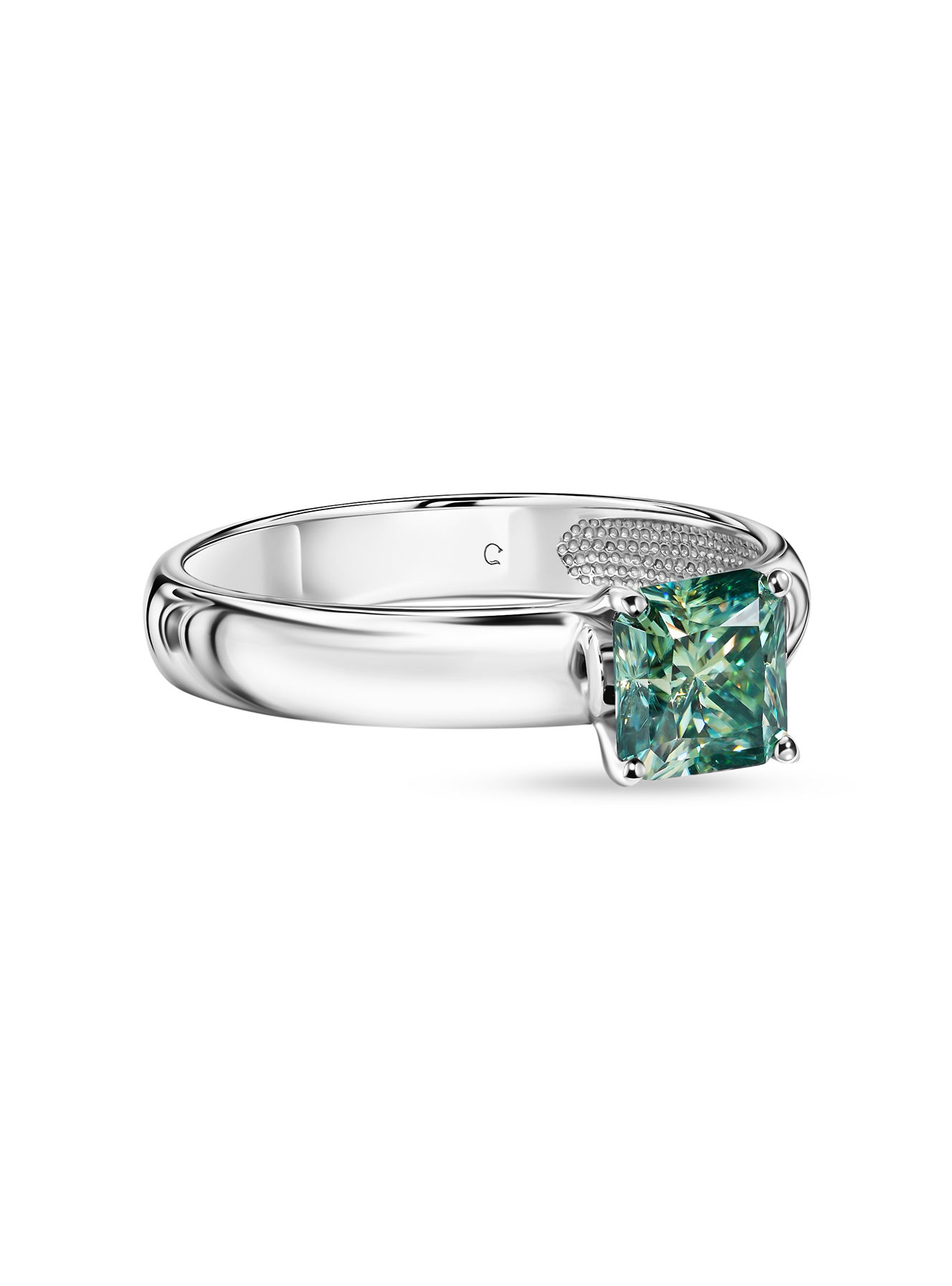 Кольцо с муассанитом оттенка параиба