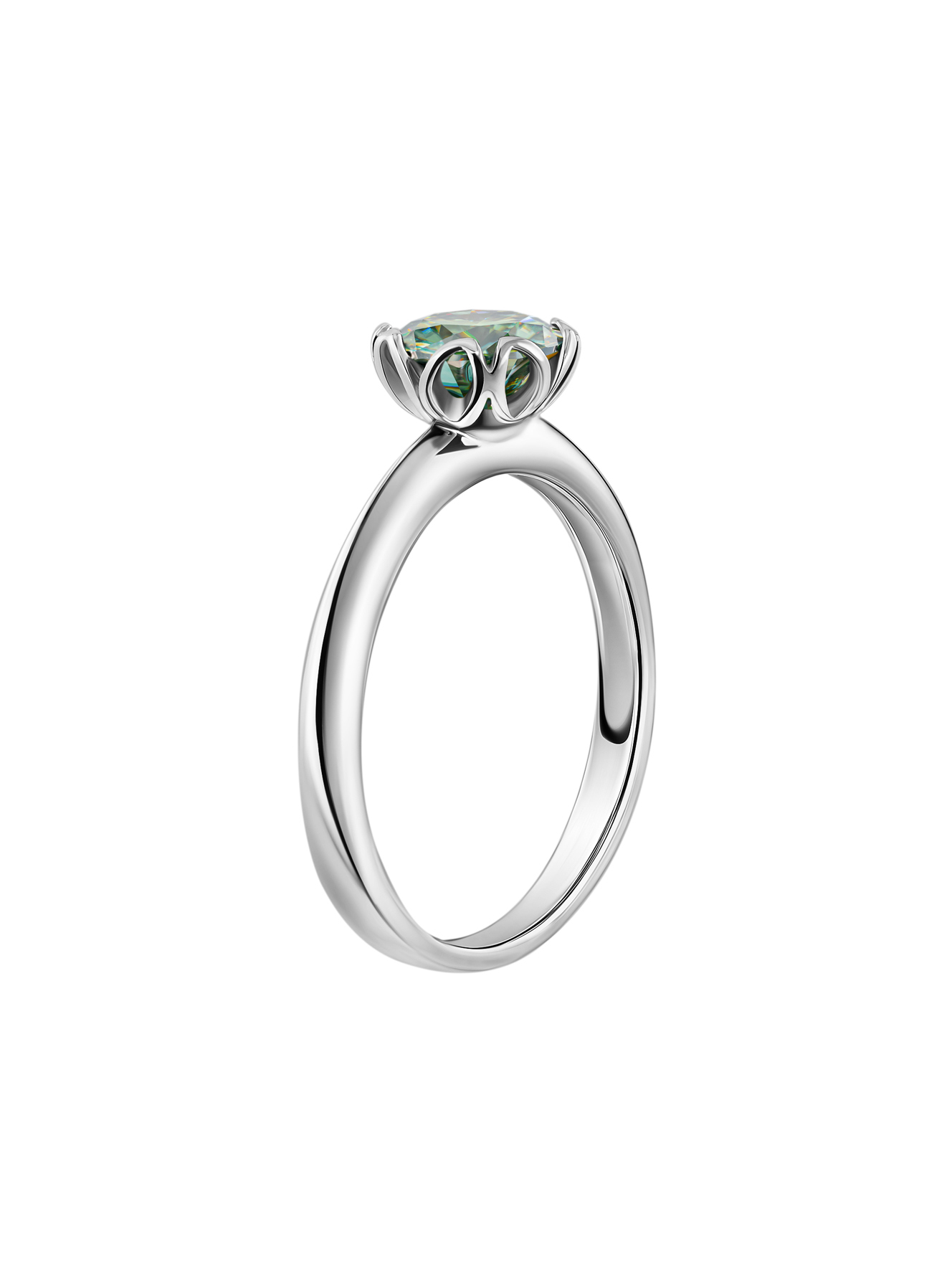 Муассанит параиба — это не просто драгоценный камень, это твой личный портал в подводное царство. Глубокие зеленовато-голубые переливы, пойманные в серебряные лепестки оправы, словно приносят прохладу океанских глубин в знойный день. Изысканный камень завораживает игрой света, как будто внутри него танцуют солнечные лучи, проникшие сквозь морскую гладь. Надев это кольцо на деловую встречу или романтический ужин, ты покажешь миру, что выбираешь не просто тренды, а уникальные истории. В каждом движении руки — частичка твоей смелости и любви к необычному. Этот редкий оттенок станет той самой деталью, которая превратит комплимент "красивое кольцо" в восхищенное "где ты его нашла?"